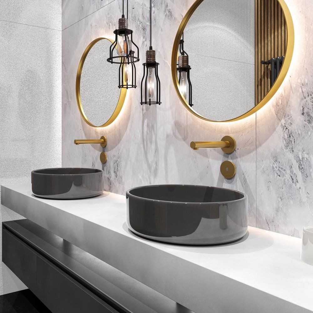 - Элегантное матовое золотое покрытие, подчеркивающее стиль вашей ванной комнаты.