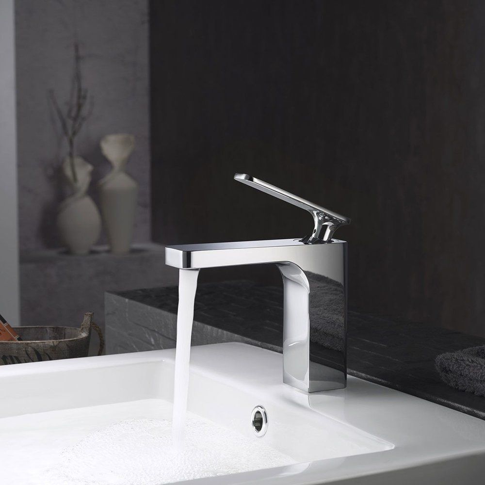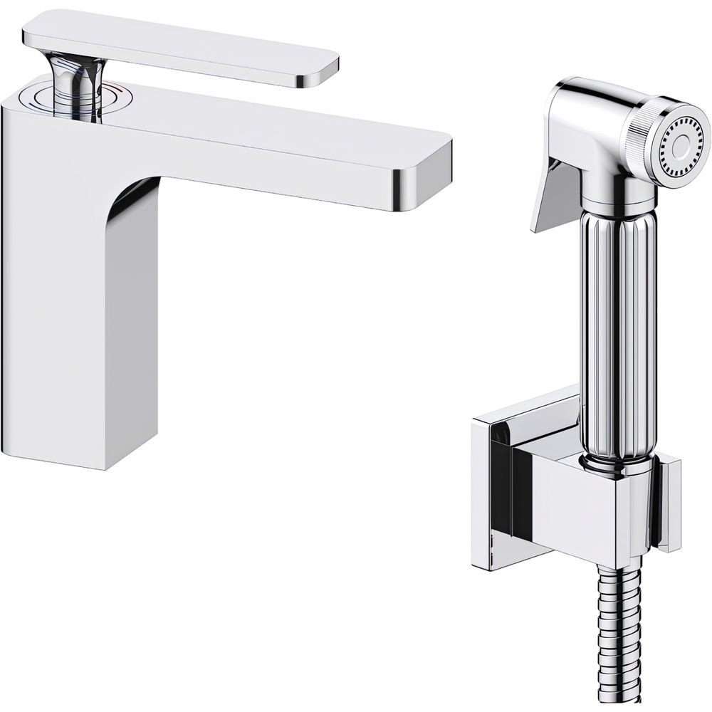 Смеситель изготовлен из прочной латуни, что обеспечивает долговечность и устойчивость к коррозии. Длина излива составляет 12.5 см, а высота — 11.1 см, что оптимально подходит для стандартных раковин. Компактная форма и удобная гибкая подводка позволяют легко устанавливать смеситель даже в небольших помещениях. В комплект входят аэратор для смягчения струи воды, душевой шланг, лейка для гигиенического душа и настенный держатель.