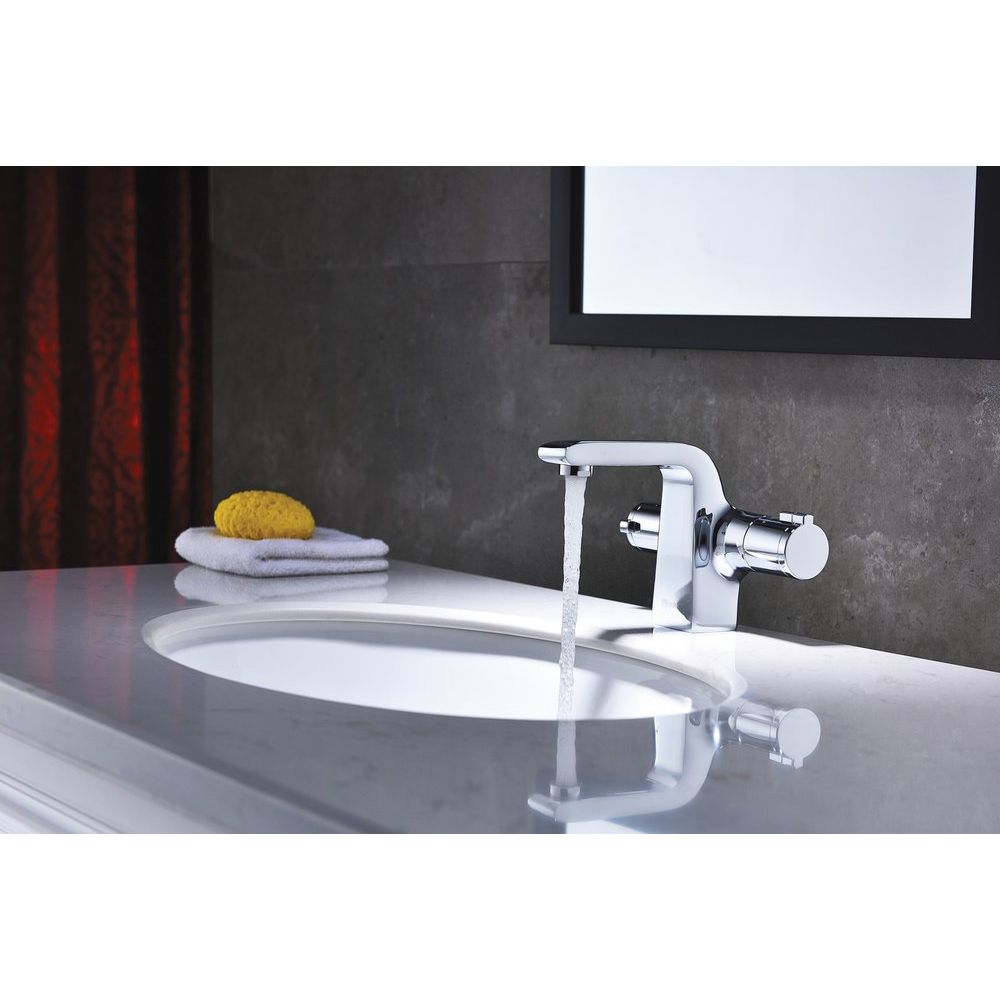 Излив смесителя длиной 10.8 см и высотой 10.9 см обеспечивает удобство использования. Латунная конструкция гарантирует долговечность и надежность, а гладкая глянцевая поверхность легко моется. Термостатическая функция сохраняет воду заданной температуры. В комплекте аэратор, гибкая подводка длиной 35 см и надежные крепления. Товар произведен в Чехии и поддерживается 4-летней гарантией.