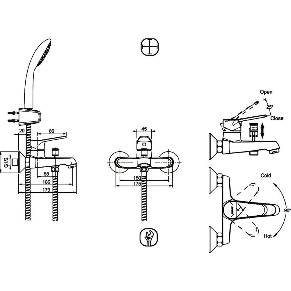 Смеситель обладает фиксированным изливом длиной 16.5 см, что идеально подходит для стандартных ванн. Однорежимная душевая лейка изготовлена из ABS-пластика, а кнопочный переключатель позволяет без усилий переключаться между режимами потока воды. Используйте душевой шланг длиной 150 см для максимального комфорта и свободы движений. Излив обеспечивает поток воды до 20 л/мин, а душевая лейка — 12 л/мин, что способствует быстрому и эффективному использованию воды.