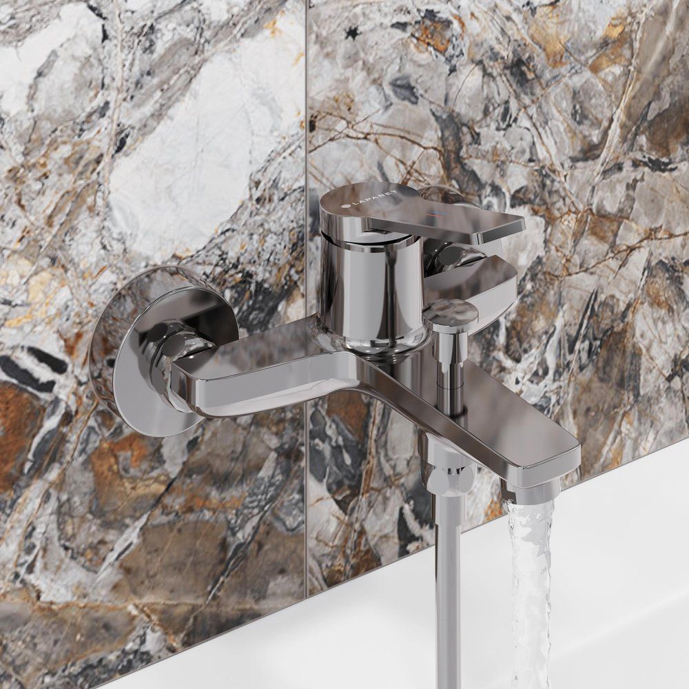 Смеситель изготовлен из прочной латуни и имеет фиксированный излив длиной 17,3 см. Оснащён встроенным девиатором, который автоматически переключает поток воды с душа на излив, обеспечивая удобство в использовании. Функция экономии расхода воды позволяет рационально использовать ресурсы. Подключение к водопроводу осуществляется через подводку 1/2 дюйма. Глянцевая поверхность не только добавляет эстетическое удовольствие, но и повышает устойчивость смесителя к загрязнениям.