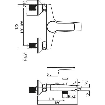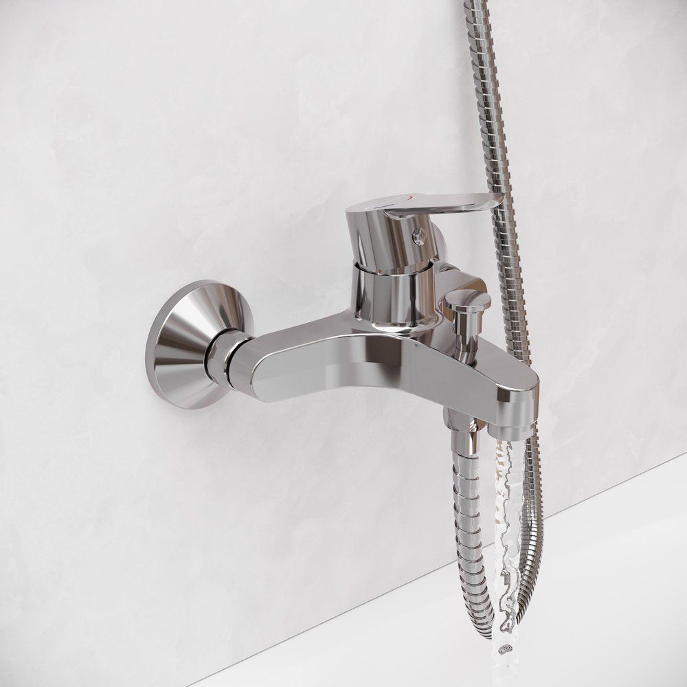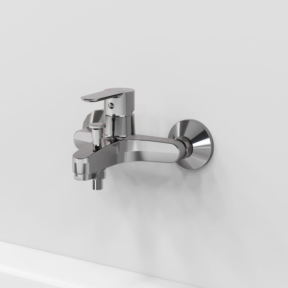 Смеситель оснащён фиксированным изливом длиной 16 см, идеально подходящим для большинства ванн. Автоматический девиатор значительно упрощает использование, мгновенно переключая поток воды с душа на излив при закрытии воды. Гладкая и блестящая поверхность выполнена в современном дизайне. Подводка стандартного размера 1/2 и наличие аэратора и эксцентриков делают установку максимально простой.
