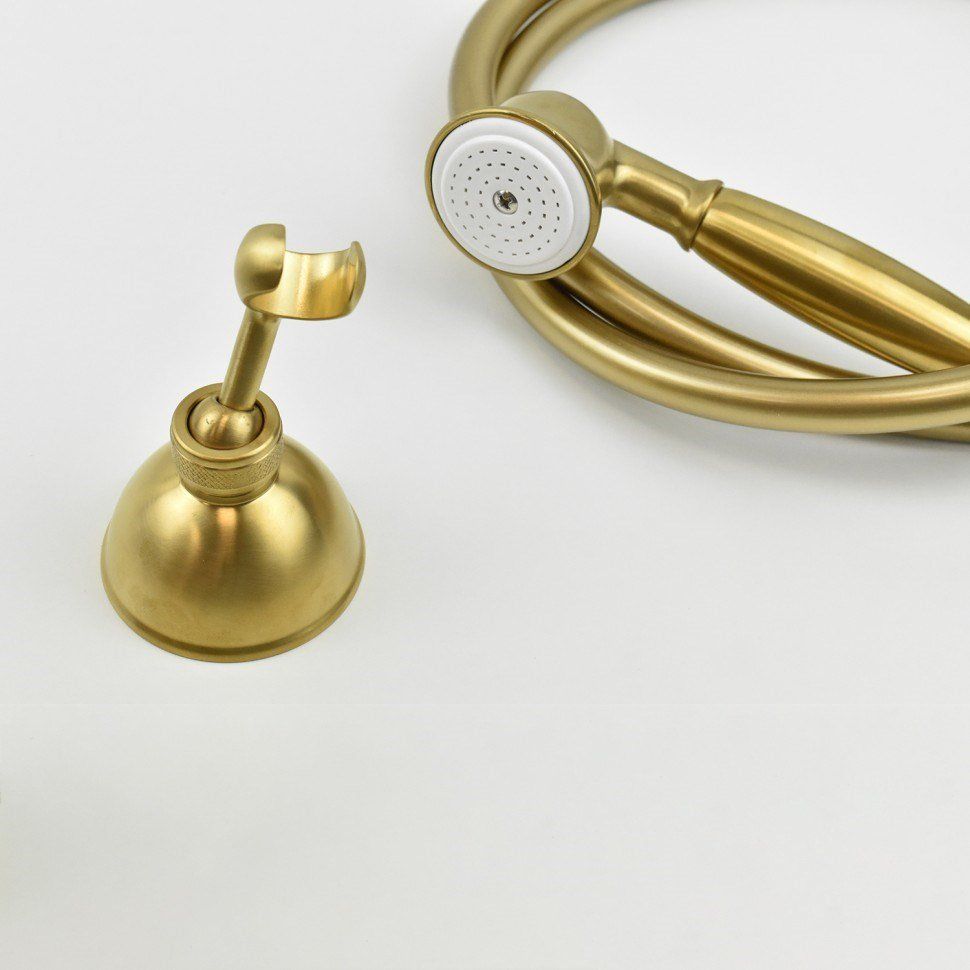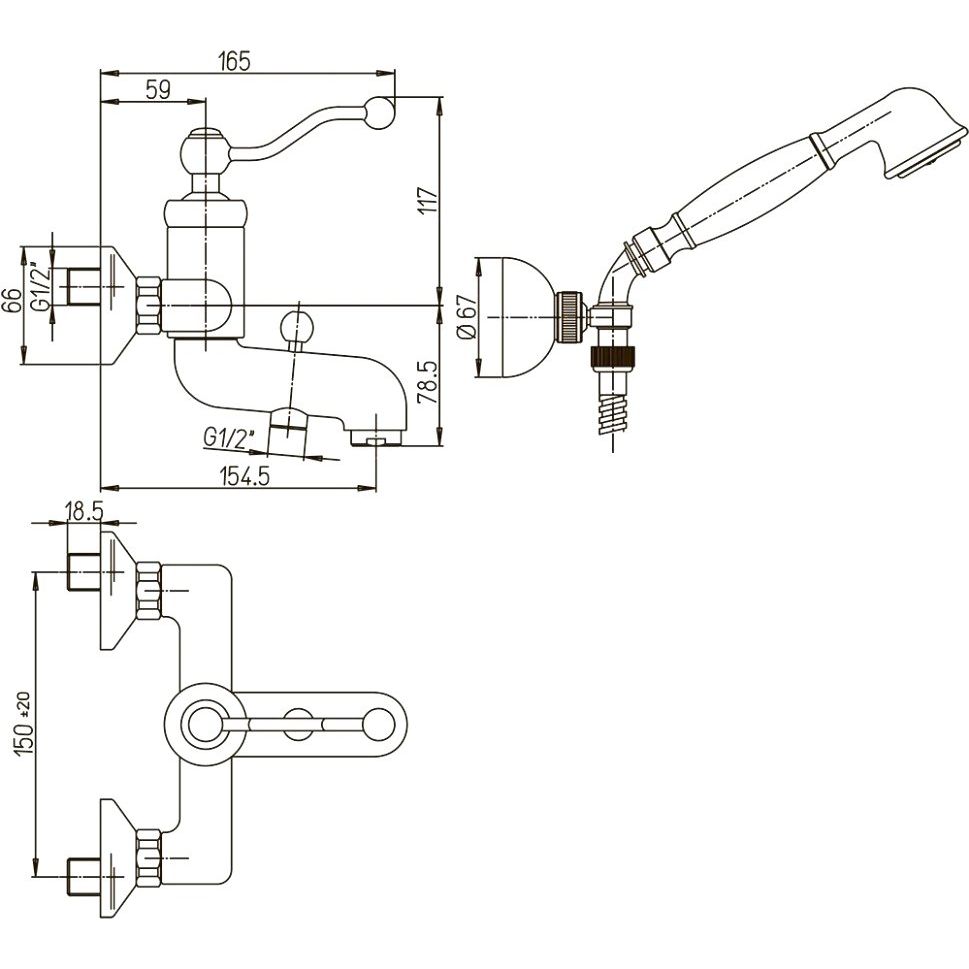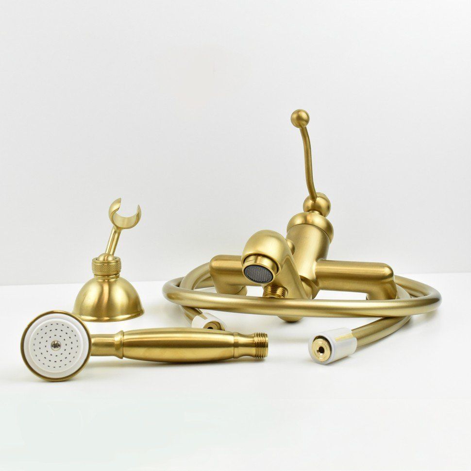 Смеситель изготовлен из надежной латуни и дополнительно включает в себя душевой гарнитур. Длина излива составляет 15,45 см с фиксированным положением, что подходит для различных вариантов установки. Смеситель оснащён лейкой с одним режимом струи и шлангом длиной 150 см, удобным для стандартных ванных комнат. Поставляется с аэратором, эксцентриками, настенным держателем и обеспечивает водный расход 14 л/мин при подводке 1/2.