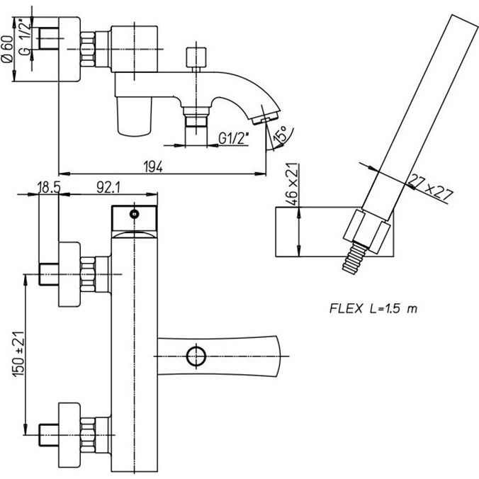 Смеситель для ванны с душем Paini Lady оснащен керамическим картриджем, который гарантирует плавное регулирование температуры и напора воды. Глянцевая или матовая поверхность создает стильный внешний вид и делает уход за изделием простым и быстрым. Для вашего удобства предусмотрен аэратор, душевой шланг длиной стандартной длинны, компактная душевая лейка с одним режимом струи и встроенный девиатор, который автоматически переключает поток с душа на излив при закрытии воды. Для простоты установки в комплекте поставляются эксцентрики и настенный держатель. Смеситель имеет стандартную подводку соединением 1/2 дюйма.