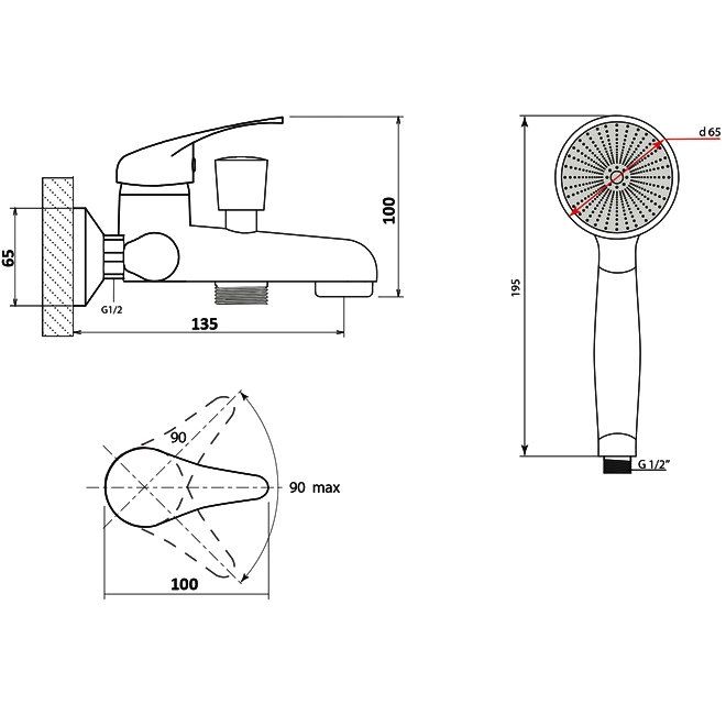 - Угол поворота ручки в 100 градусов для более точного регулирования.