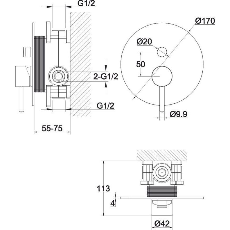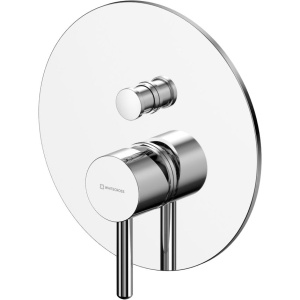 Этот смеситель изготовлен из высококачественной латуни с глянцевым хромированным покрытием, добавляющим блеск и защищающим от коррозии. Внутренняя часть уже включена в комплект, что облегчает установку и снижает затраты. Рекомендуемая минимальная глубина для установки составляет всего 55 мм. Смеситель оснащён керамическим картриджем и переключателем потока. Пропускная способность составляет 21 л/мин для потока №1 и 17,7 л/мин для потока №2 при давлении 3 бар. Подводка осуществляется через соединения 1/2.