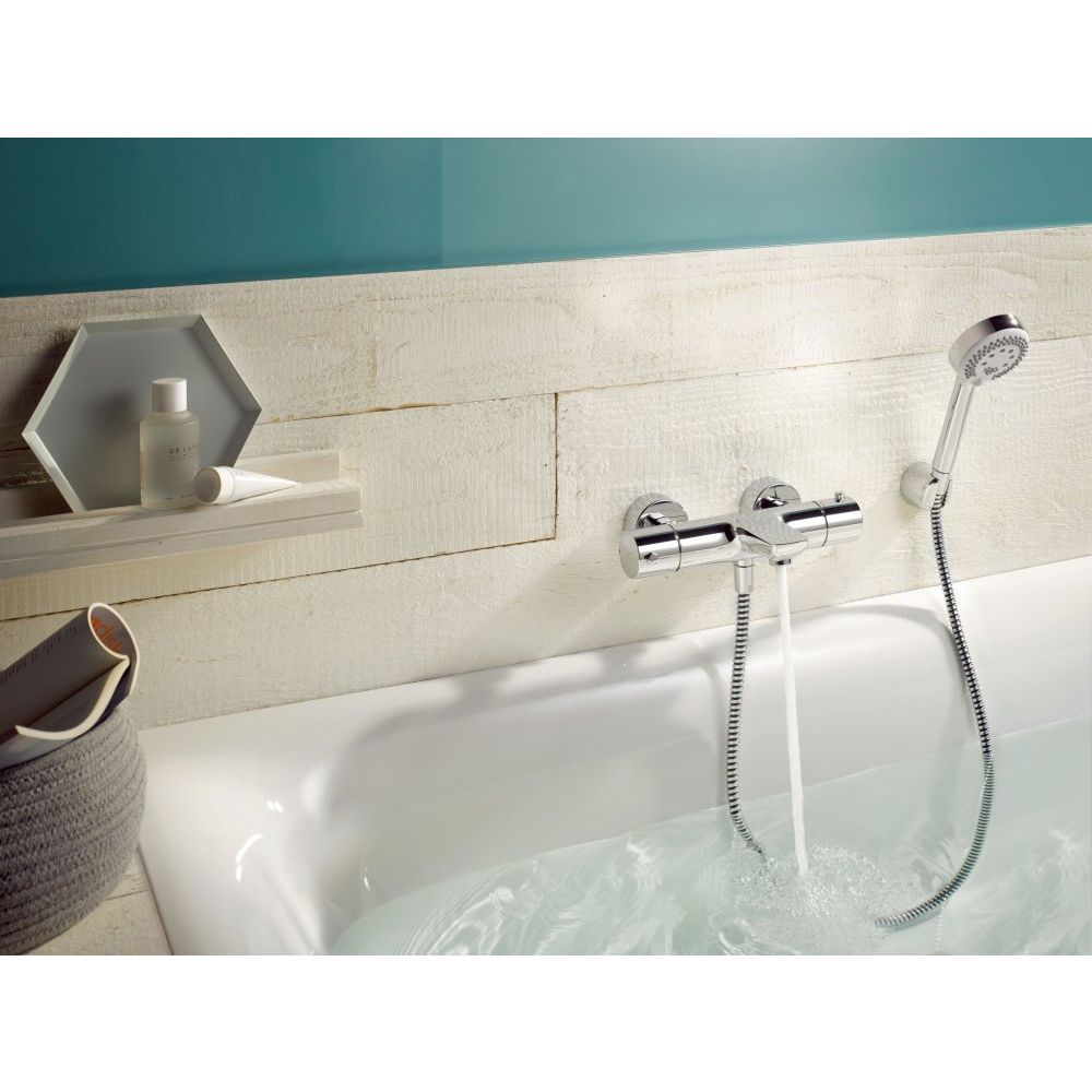 Смеситель Kludi Objekta обладает фиксированным изливом длиной 16 см и оснащен термостатическим картриджем, который надежно поддерживает стабильную температуру воды. Встроенный клапан защищает от обратного потока, обеспечивая безопасность всей водопроводной системы. Подводка стандартная — 1/2 дюйма. В комплекте фильтры очистные и эксцентрики, хотя душевой гарнитур необходимо приобрести отдельно. Это изделие имеет пятилетнюю гарантию, подчеркивая уверенность в его качестве.