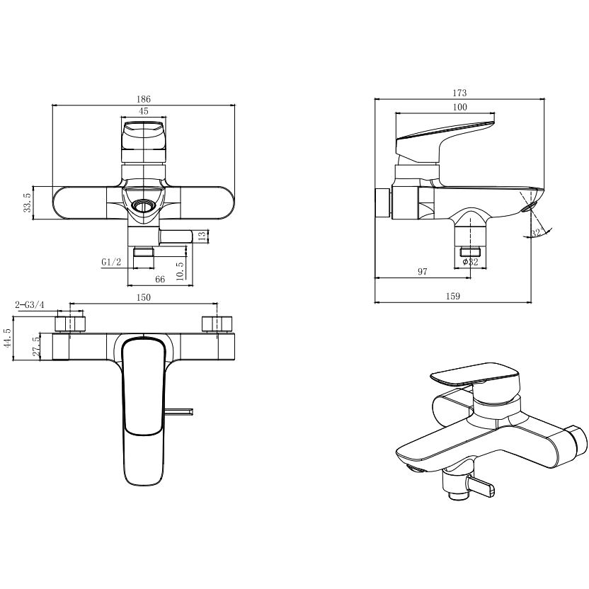 Данный смеситель для ванны имеет фиксированный излив длиной 12.5 см, что делает его компактным и удобным в монтаже. Он применяется с подводкой 1/2 и оснащён керамическим картриджем, обеспечивающим плавное регулирование температуры и напора воды. Аэратор позволяет снизить расход воды без потери комфорта. Обратите внимание, что душевой гарнитур в комплект не входит и приобретается отдельно.