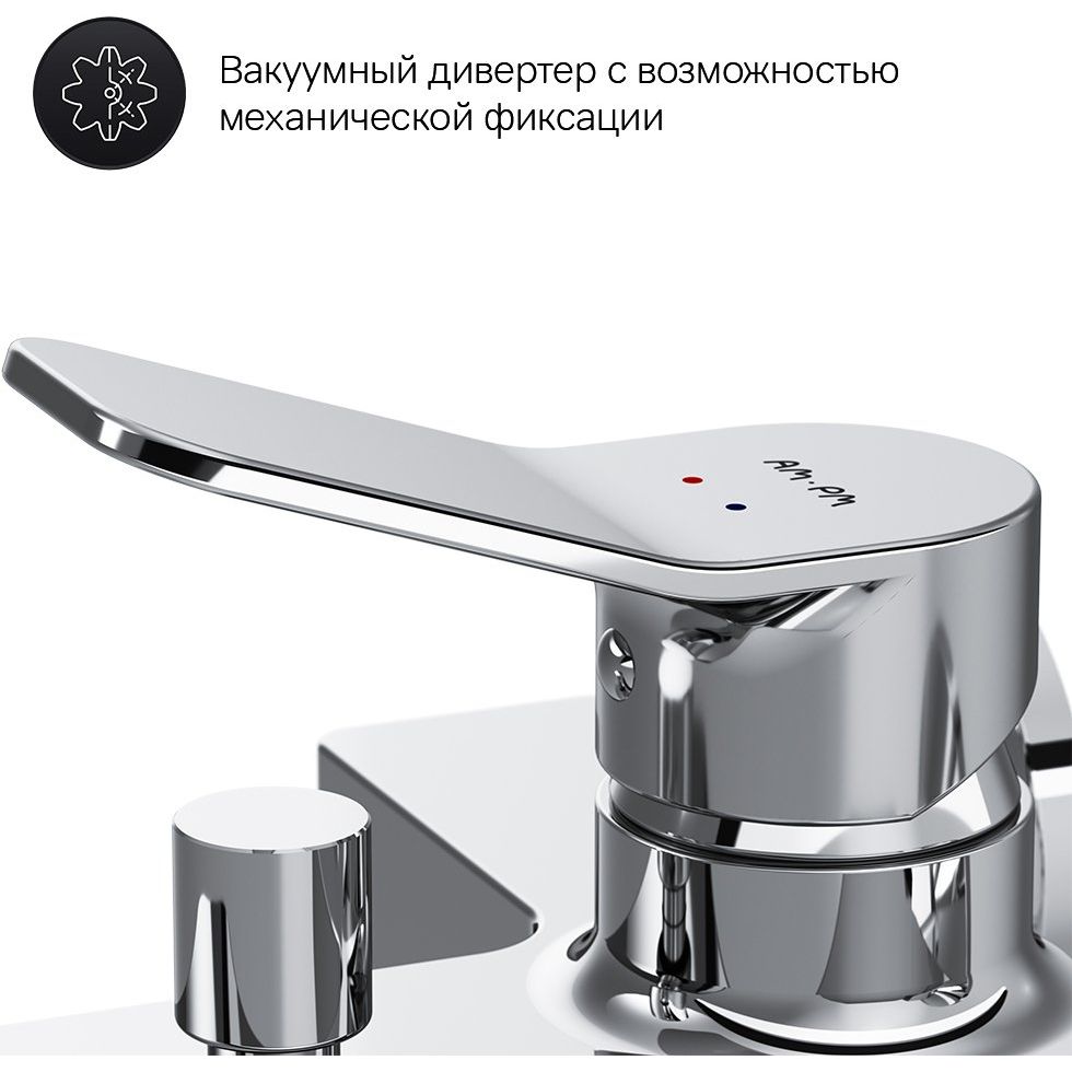 Смеситель для ванны с душем AM.PM X-Joy F85A10000 — это сочетание элегантного дизайна и функциональности, воплощённое компанией AM.PM. Латунный корпус с современным покрытием Everlast гарантирует долгий срок службы, оставаясь при этом неизменно привлекательным. Внутри скрывается надежный керамический картридж SoftMotion, обеспечивающий бесшумную работу и герметичность даже при нестабильном давлении. Пневматический девиатор с механической доводкой позволяет легко менять режимы даже при низком давлении. Аэратор на фиксированном изливе дополнительно смягчает воду, насыщая её воздухом, что предотвращает разбрызгивание. Смеситель также оснащён клапаном обратного потока, обеспечивающим безопасность эксплуатации.