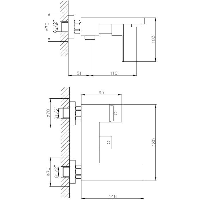 - Эргономичный дизайн: фиксированный излив и удобный настенный держатель для душа.