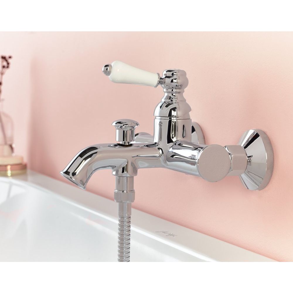 Смеситель выполнен из качественной латуни с глянцевой поверхностью, что добавляет ему стильный вид и защищает от коррозии. Излив длиной 18.4 см подходит для большинства стандартных ванн и имеет фиксированное крепление для стабильного потока воды. Встроенный девиатор автоматически переключает поток с душа на излив при закрытии воды, что делает его использование еще более удобным. Керамический картридж отвечает за плавность регулировки температуры и напора. Встроенный клапан защищает от обратного потока, а наличие аэратора и эксцентриков делает эксплуатацию смесителя экономичной и комфортной. Подводка 1/2 обеспечивает совместимость с большинством систем водоснабжения. Изделие изготовлено во Франции и сопровождается пятилетней гарантией.