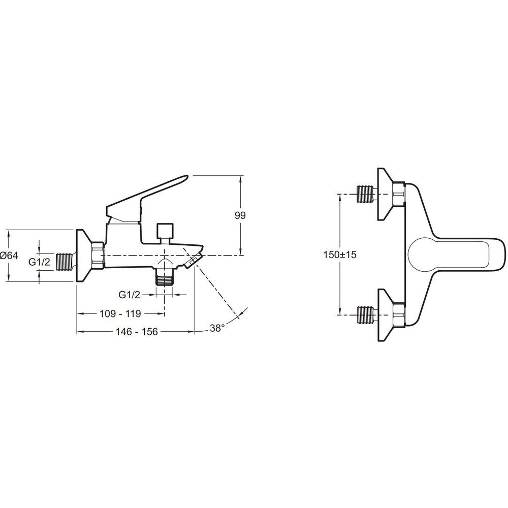 Смеситель имеет фиксированный излив длиной 15.6 см и оснащен встроенным девиатором, который автоматически переключает поток воды с душа на излив при закрытии воды. Расход для ванны составляет 22 литра в минуту, обеспечивая быстрое наполнение. Устройство дополнено аэратором и эксцентриками для легкости установки и эксплуатации. Глянцевая поверхность добавляет изюминку в дизайн интерьера.
