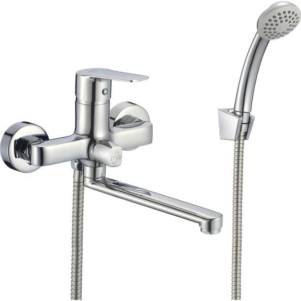 Milardo Helic HELSB02M02 создан из латуни и снабжен глянцевым никель-хромовым покрытием, устойчивым к сколам и трещинам. В комплект входит душевой гарнитур: лейка с одним режимом струи, шланг длиной 150 см. Излив поворотный, длина 17.2 см, оснащен аэратором для экономии воды. Комплект также включает эксцентрики и настенный держатель, обеспечивающие простоту установки. Размер подводки 1/2 для стандартного крепления.