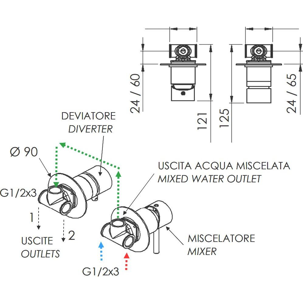 - Переключатель потоков и керамический картридж обеспечивают плавное управление и долговечность.
