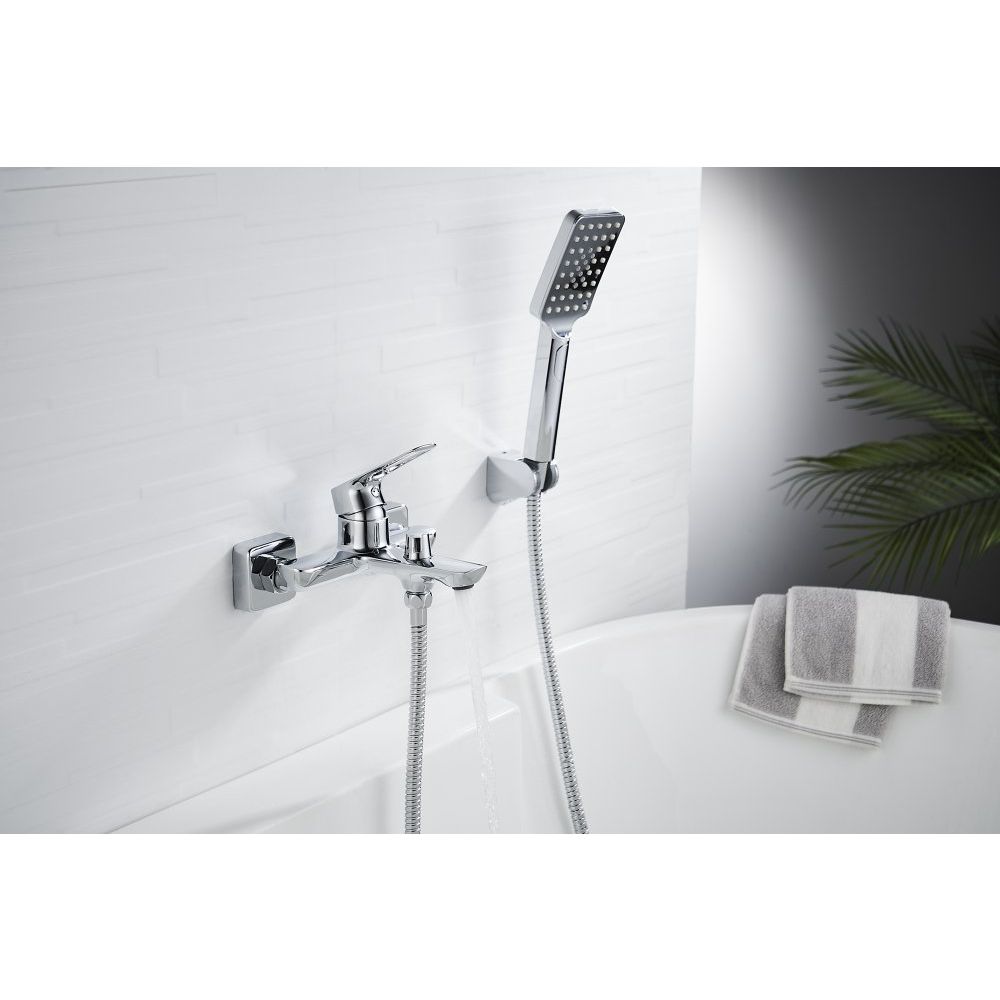 Установка смесителя требует стандартной подводки и обеспечения прочной фиксации на стене с помощью эксцентриков и настенного держателя, входящих в комплект. Рекомендуется установка специалистом для гарантии надежности и правильной настройки устройства. Благодаря универсальному соединению 1/2, смеситель подходит для большинства сантехнических систем.