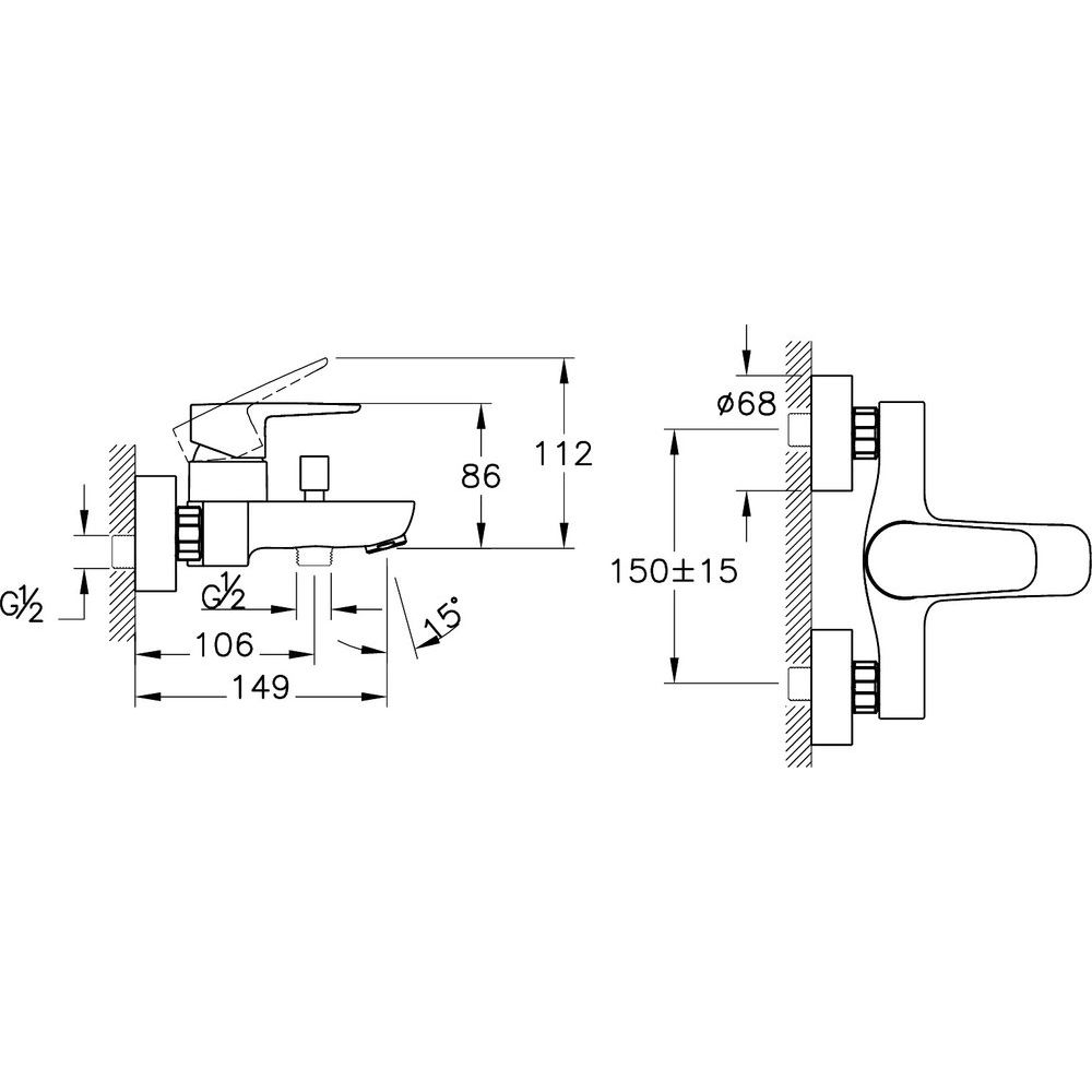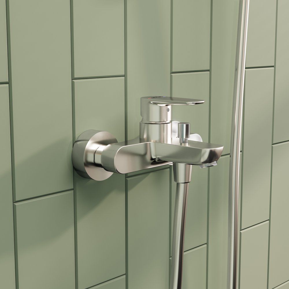 Смеситель оснащен фиксированным изливом длиной 14.9 см и керамическим картриджем для мягкого регулирования температуры. Подключение осуществляется через подводку 1/2, что делает установку легкой и быстрой. В комплекте идет аэратор и эксцентрики, но душевой гарнитур нужно приобретать отдельно, давая вам возможность подобрать его по своему вкусу.