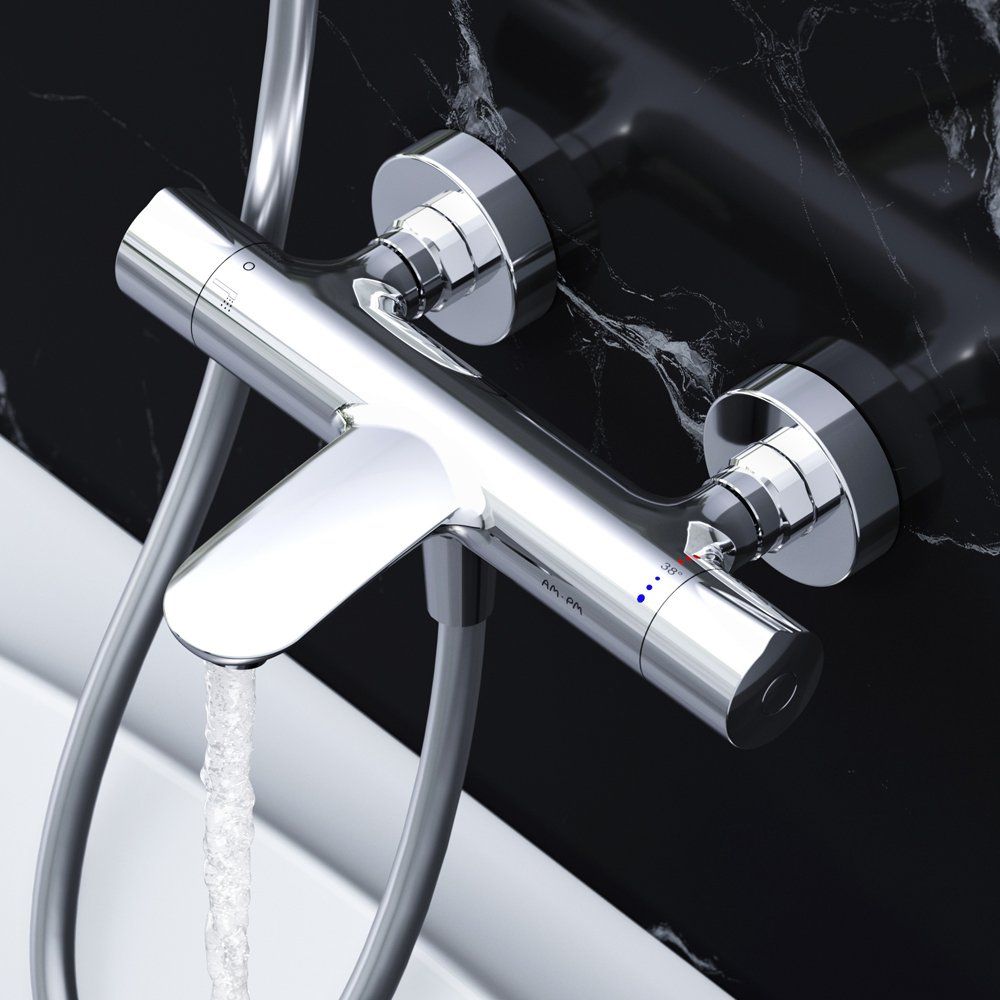 Этот термостатический смеситель для ванны с встроенным душем отличается фиксированным изливом длиной 17.2 см. Он оборудован аэратором и эксцентриками, подводка стандарта 1/2 – идеальное решение для современных ванных комнат. Смеситель выполнен в Германии, что подтверждает его высокое качество и надежность в эксплуатации.