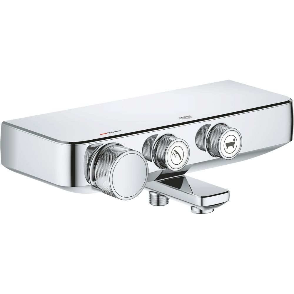 Термостатический смеситель Grohe Grohtherm SmartControl изготовлен из высококачественной латуни и пластика. Глянцевая поверхность добавляет элегантности, а фиксация излива длиной 11.6 см позволяет легко переключаться между душем и ванной. Технология CoolTouch защищает от перегрева, а встроенный аэратор обеспечивает равномерный поток воды. Подключение осуществляется через стандартную подводку 1/2 дюйма. Кроме того, предусмотрен встроенный клапан для защиты от обратного потока.