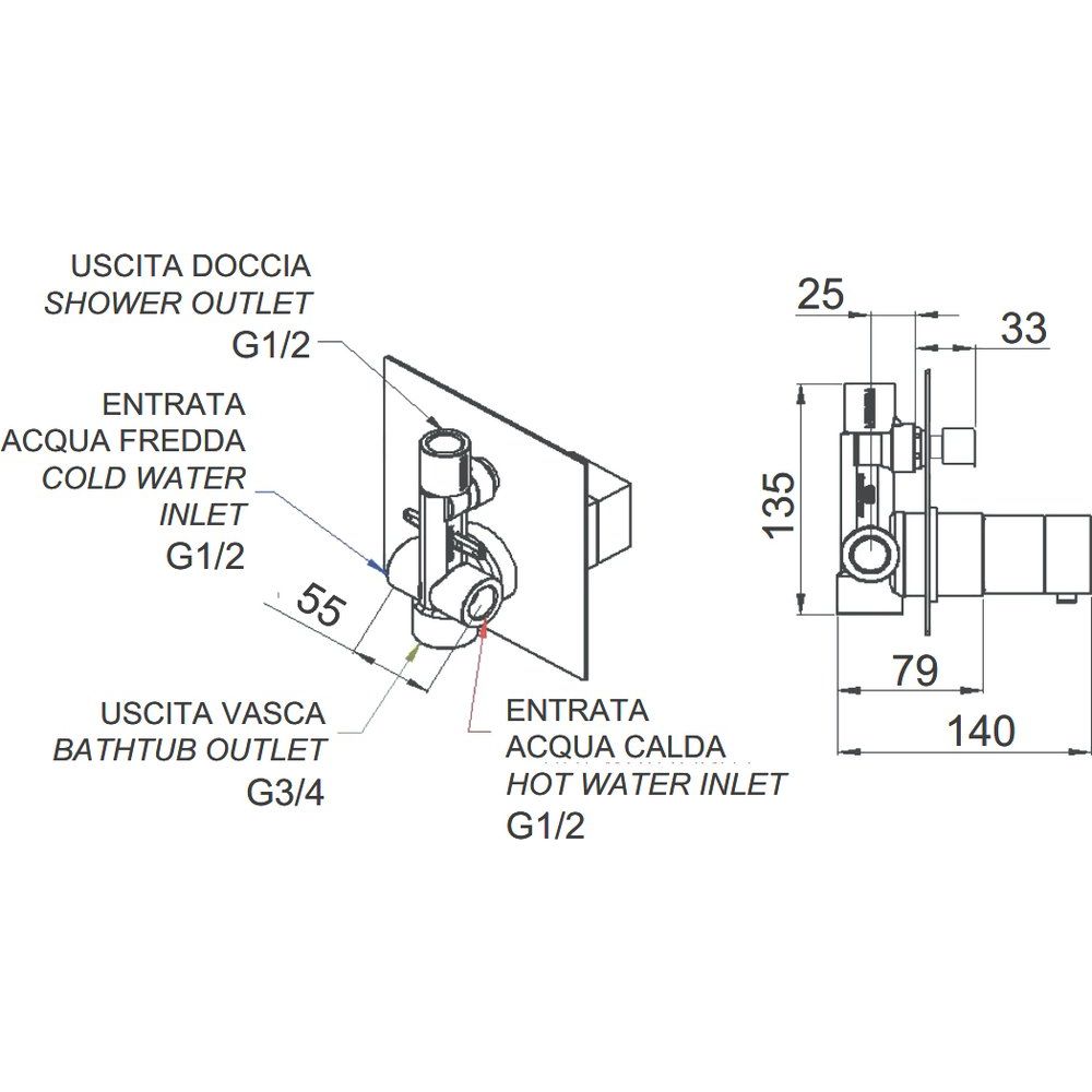 Изготовленный из прочной латуни, этот смеситель оснащен термостатическим картриджем, который позволяет поддерживать заданную температуру воды. В комплект входит внутренняя часть, но душевой гарнитур необходимо приобретать отдельно. Подводка 1/2 обеспечивает совместимость с большинством водопроводных систем. Переключатель потоков и встроенный девиатор делают эксплуатацию легкой и удобной.