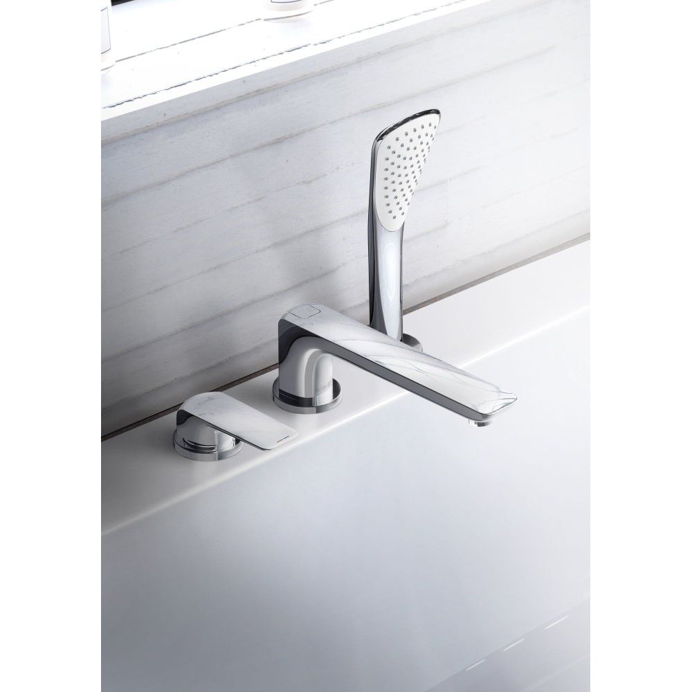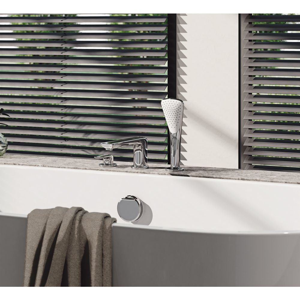 Современный смеситель Kludi Ameo для установки на борт ванны привлекает внимание округлыми формами и элегантным дизайном. Изготовленный из прочной латуни и покрытый износостойким хромом, он идеально дополнит интерьер вашей ванной комнаты. Благодаря встроенному переключателю режимов, вы легко сможете переключаться между душем и ванной, а вытягиваемая леечка скрывает душевой шланг, когда он не используется, что экономит пространство и сохраняет эстетику помещения.