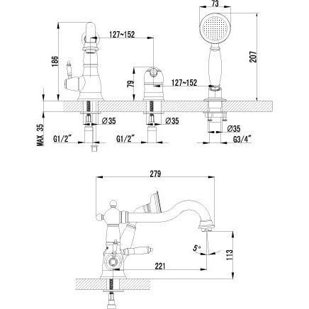 Смеситель на борт ванны Lemark Vintage LM4845B комплектуется душевым гарнитуром, который уже включен в покупку. Это обеспечит дополнительное удобство, избавляя от необходимости приобретать его отдельно.