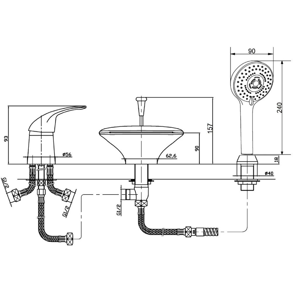 - Легкость монтажа на борт ванны с набором всех необходимых креплений и гибкой подводкой в комплекте.