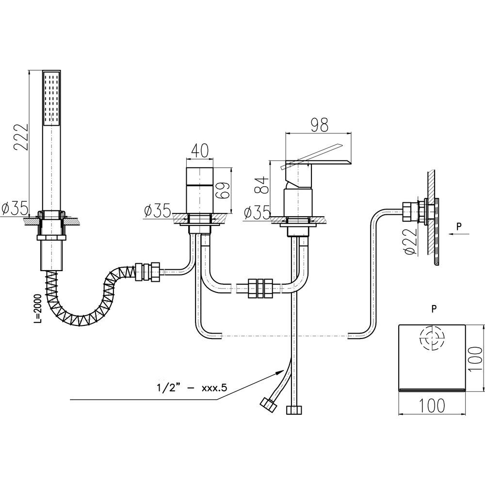 Размеры смесителя 9.8 x 4 x 8.4 см, в то время как излив имеет размеры 10 x 10 см. Переключатель потоков обладает габаритами 4 x 4 x 6.9 см. Общая длина душевого шланга составляет 200 см, что предоставляет достаточно свободы для маневров. Смеситель оснащен керамическим картриджем, который известен своей долговечностью и плавностью работы. Гибкая подводка с стандартом 1/2 упрощает подключение водоснабжения.