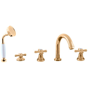 Смеситель на борт ванны Rav Slezak Morava MK162.5PZ в изысканном золотом исполнении станет утонченным акцентом в вашей ванной комнате. Этот стильный элемент сочетает в себе элегантность и современные технологии, предлагая оптимальное решение для ценителей комфорта и качества. Смеситель выполнен из прочной латуни с керамическими элементами, что обеспечивает надежность и долговечность. Управление осуществляется посредством вентилей, а современный керамический дивертор гарантирует плавное переключение потоков воды.