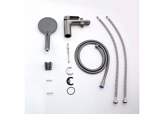 - Гибкая подводка и шланг для лейки в нержавеющей оплетке SUS 304 упрощают установку и предотвращают перекручивание.