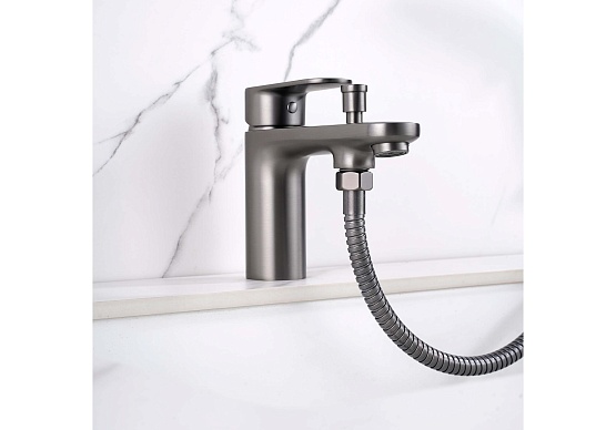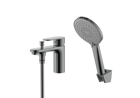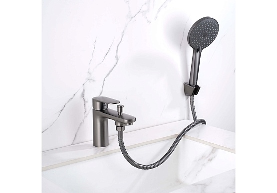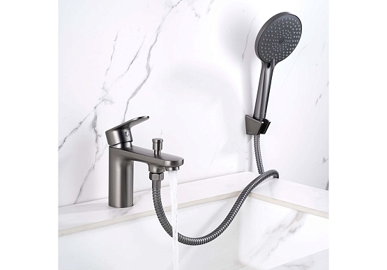 Смеситель врезной на борт ванны Aquatek AQ1844BGM из коллекции Ника выполнен в стильном цвете "оружейная сталь" и идеально подходит для современных ванных комнат. Он объединяет компактность, функциональность и надежные материалы, позволяя удобно наполнять ванну и использовать ручной душ с тремя режимами струи.