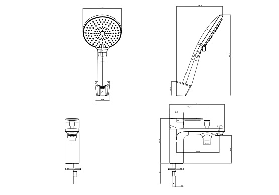 Смеситель устанавливается на ванну через одно монтажное отверстие и подключается с помощью гибкой подводки длиной 50 см стандартного размера 1/2". Излив фиксированный, высота излива 8,78 см, длина 13,35 см. Лейка ручного душа изготовлена из ABS-пластика и оснащена тремя режимами струи. Механизм управления — керамический картридж Sedal диаметром 35 мм. Максимальный расход воды при давлении 3 бара составляет 15,5 л/мин для верхнего душа и 12,7 л/мин для ручного душа.