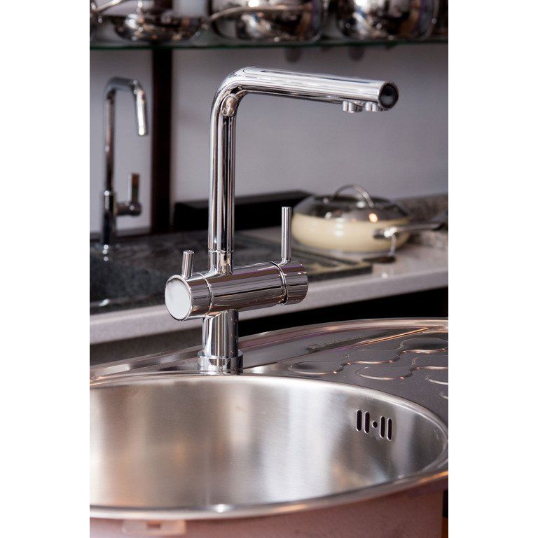 - Совмещённый излив для фильтрованной воды экономит пространство