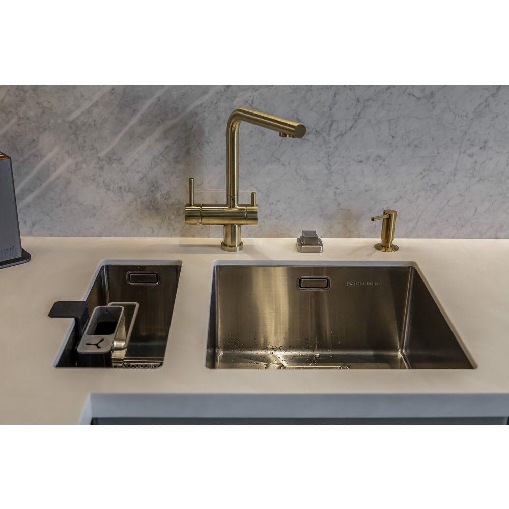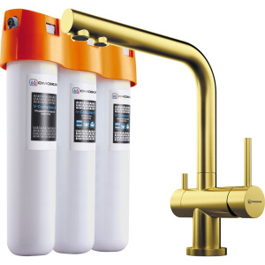 Комплект для кухни от Omoikiri, включающий смеситель Nagano PVD-G в цвете светлого золота и фильтр Pure Drop Lite, станет идеальным выбором, если вы цените качество и функциональность. Этот смеситель совмещает стильный дизайн с инновационными решениями для подачи как обычной, так и фильтрованной воды. Выполненный из прочной латуни и украшенный глянцевой поверхностью, он станет ярким акцентом вашей кухни.