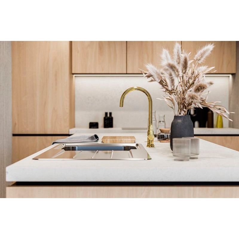 Смеситель для кухни Alveus Slim 1134833 в цвете "золото" – это воплощение стиля и функциональности для вашей кухни. Этот глянцевый смеситель из высококачественной латуни не только станет центром внимания благодаря своему утонченному дизайну, но и обеспечит долгий срок службы. Идеальный выбор для тех, кто ценит сочетание эстетики и удобства в каждом элементе интерьера.