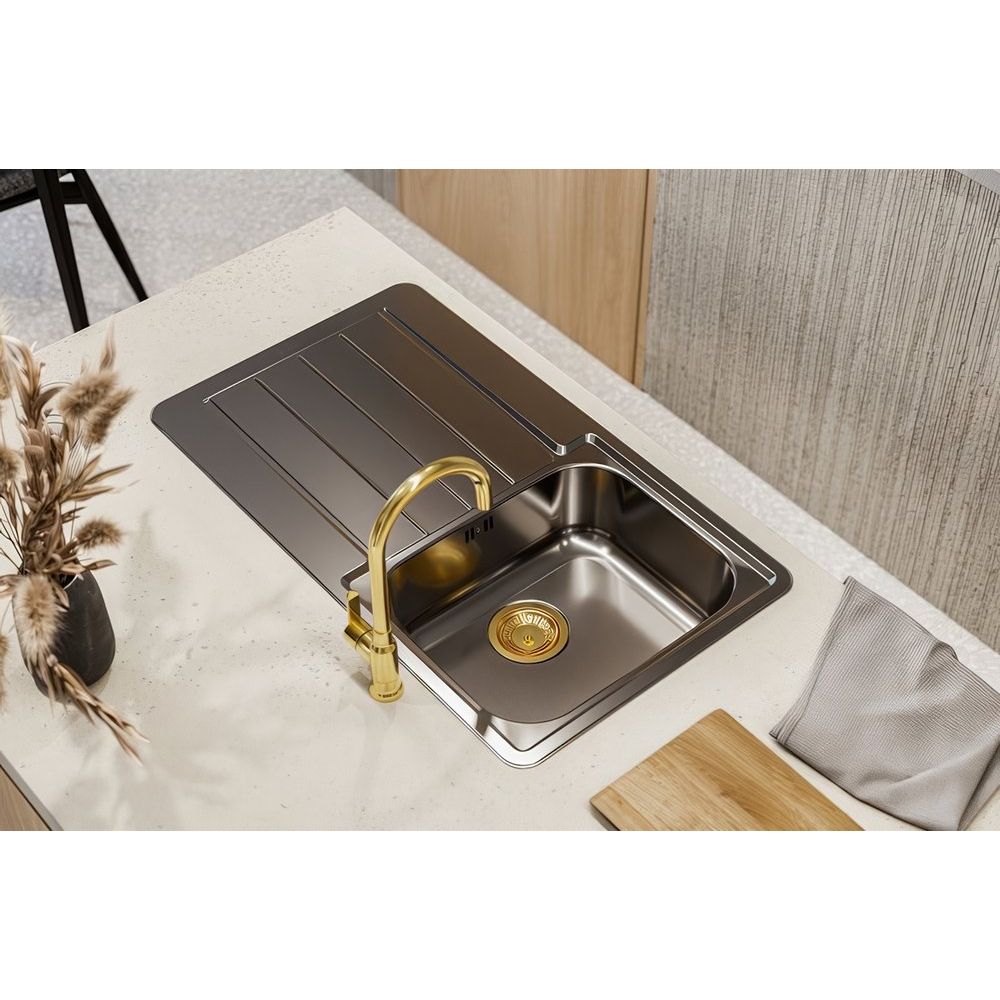 Этот смеситель выполнен из надежной латуни, что гарантирует его долговечность. Высота излива составляет 22.6 см, а длина – 16.4 см, что позволяет удобно использовать его даже с большими кухонными раковинами. Встроенный керамический картридж обеспечивает плавный ход ручки и точность настроек. Оснащен аэратором для экономии воды и имеет гибкую подводку для удобного подключения.