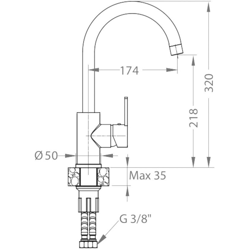 Смеситель Alveus Tonia имеет высоту излива 21.8 см и длину 17.4 см, что делает его идеальным для большинства кухонных задач. Он оснащен аэратором, который предотвращает разбрызгивание, и поставляется с гибкой подводкой и прочными креплениями, что упрощает установку. Гарантия на изделие составляет 5 лет, что подтверждает его долговечность и надежность.