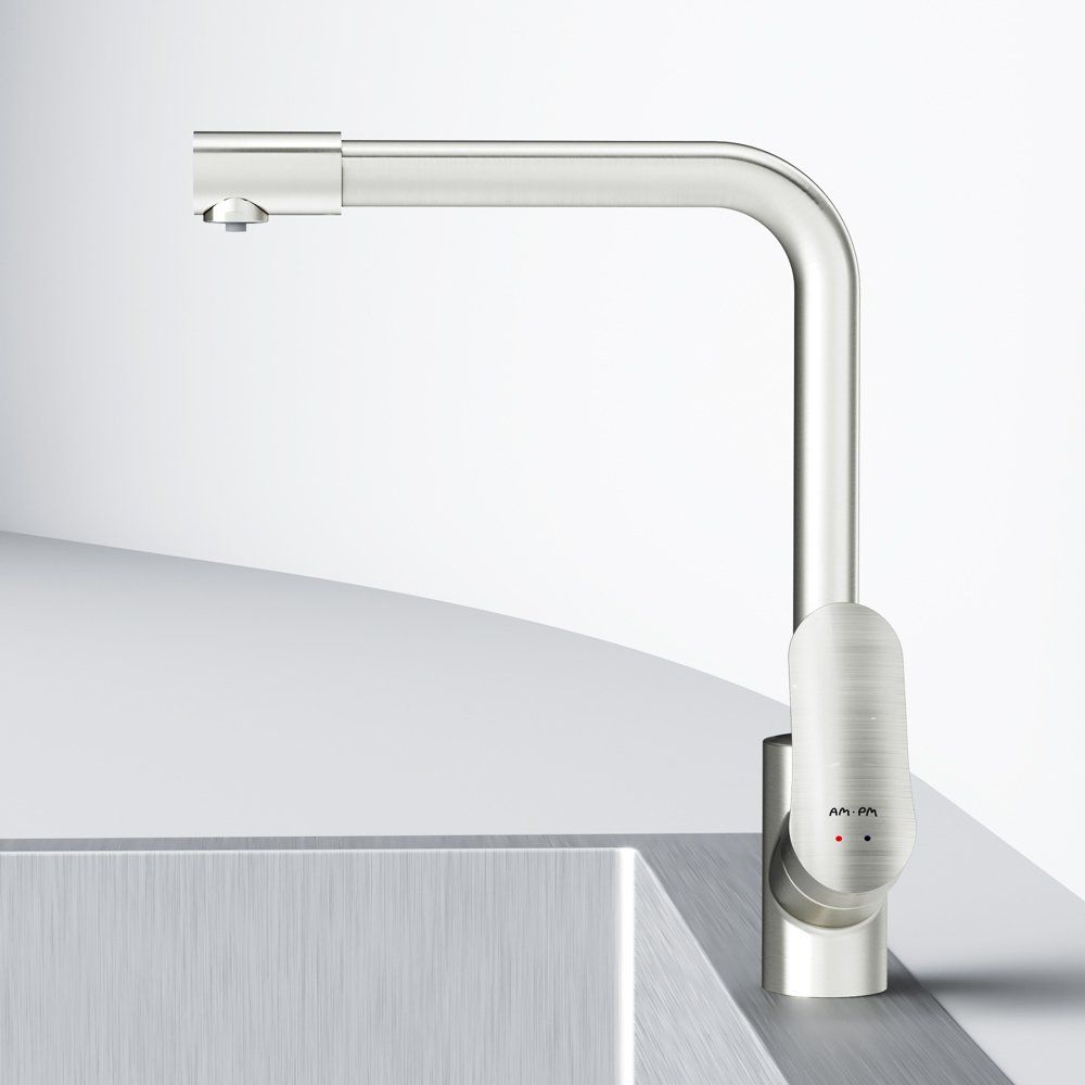 Смеситель для кухни AM.PM Like F8005711 имеет высоту излива 28.5 см и длину 21.5 см, что позволяет легко наполнить даже самые высокие емкости. Совмещенный излив дает возможность получать фильтрованную воду, экономя пространство на кухне. Оснащен аэратором и гибкой подводкой для простой установки.