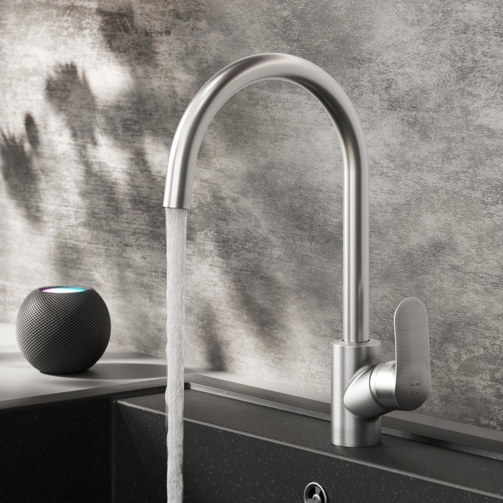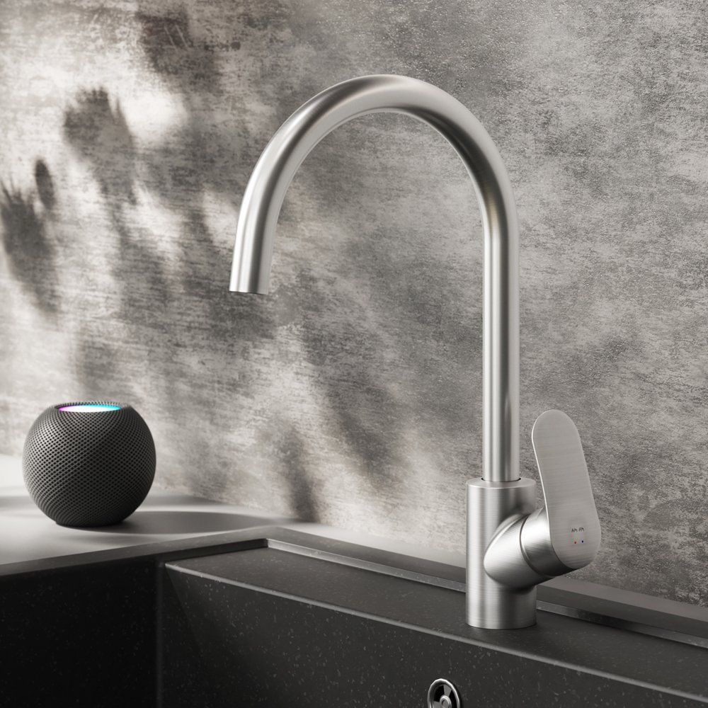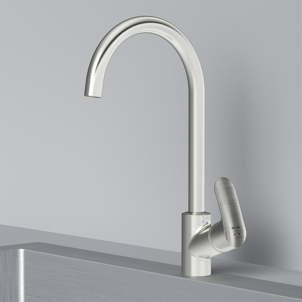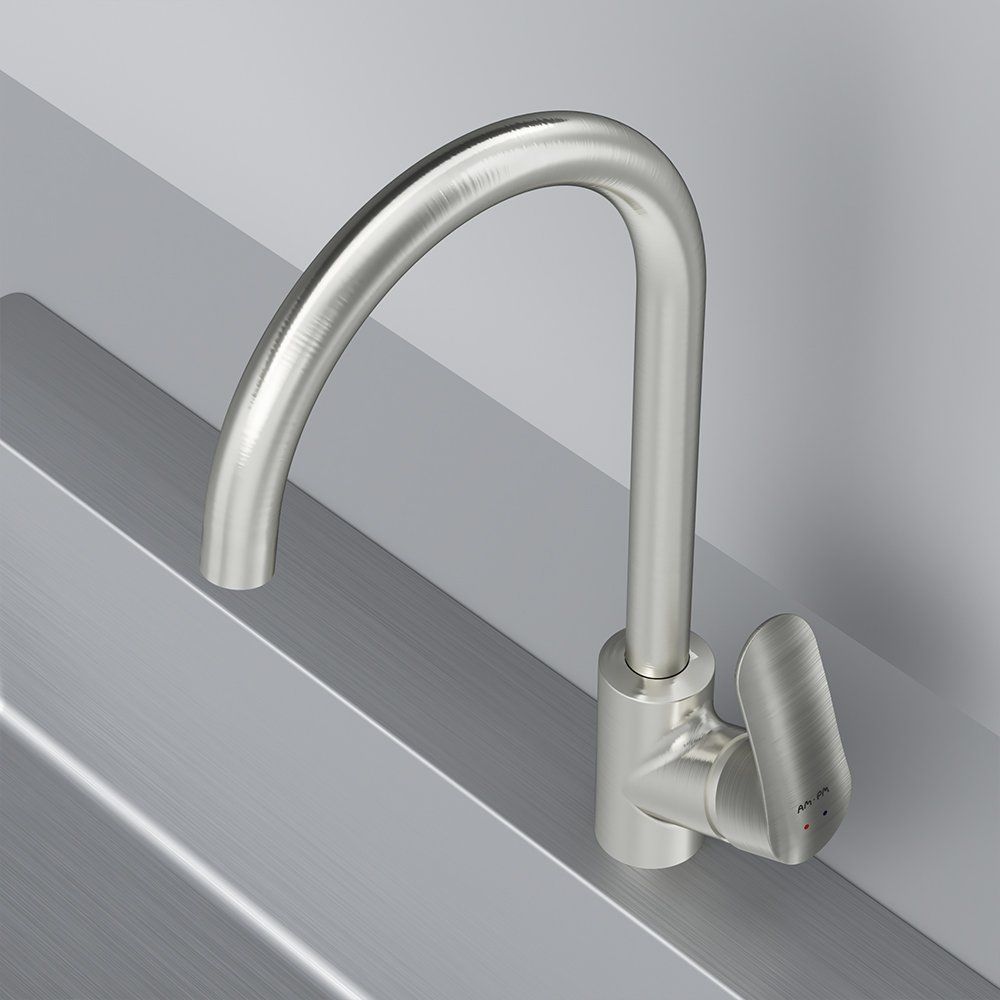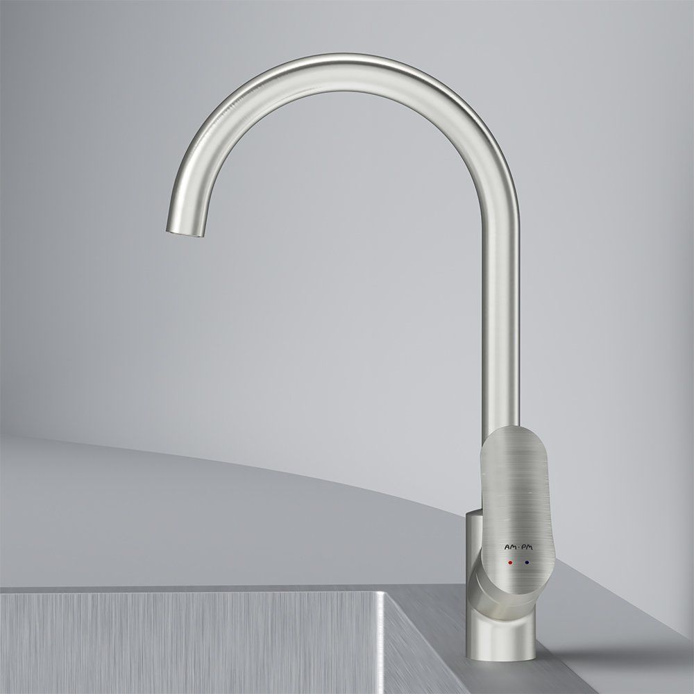 Смеситель на кухню AM.PM Like F8007111 выполнен из высококачественной латуни, имеет высоту излива 27 см и длину 20 см. Оснащен долговечным керамическим картриджем, матовой брашированной поверхностью, а также аэратором и гибкой подводкой для удобства монтажа. Изделие производится в Германии и обеспечивается 10-летней гарантией.
