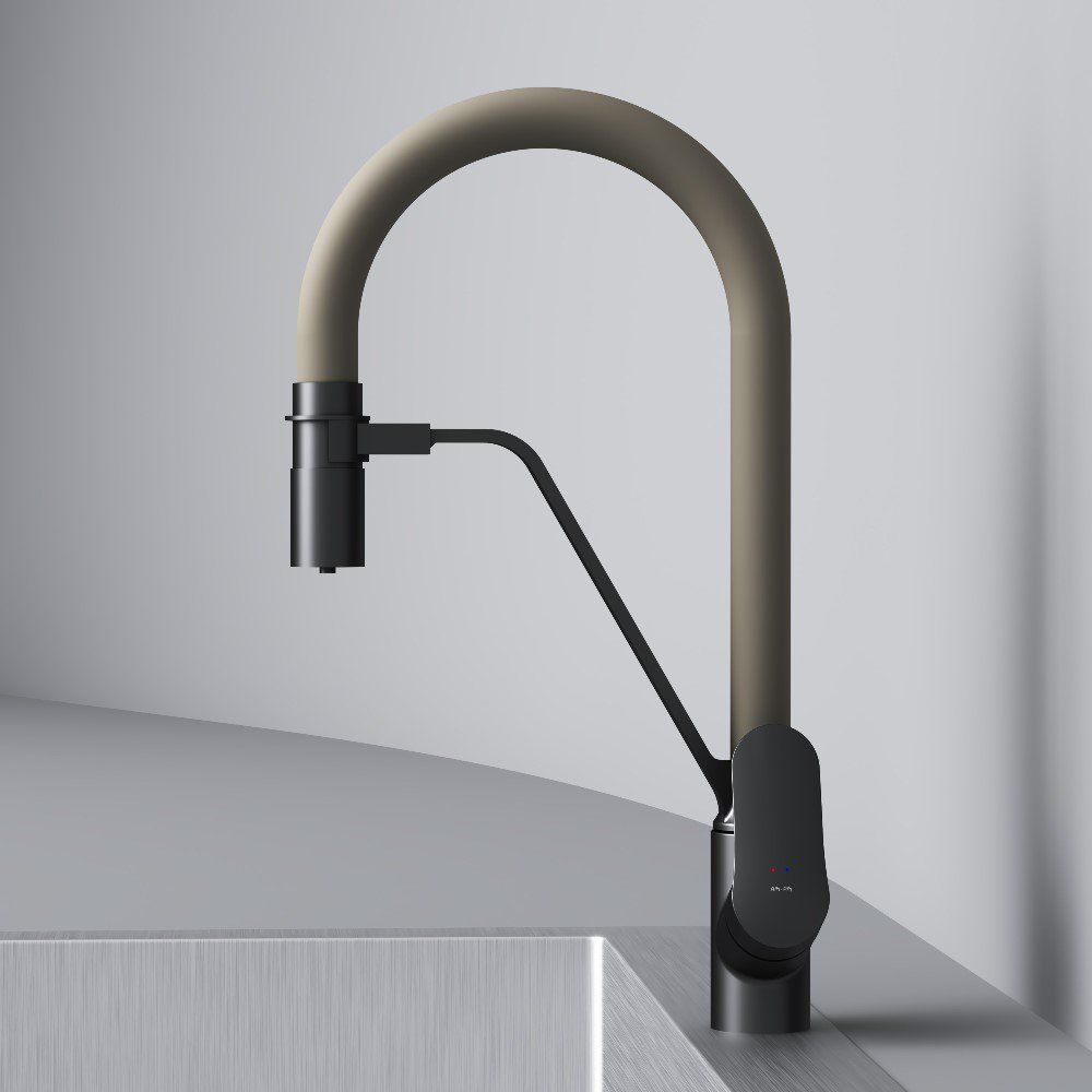 - Удобный гибкий излив с магнитным притягивателем позволяет легко направлять поток.