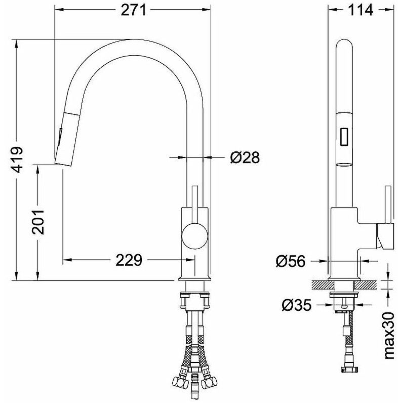 • Поворотная головка выдвижного излива на 360 градусов из нержавеющей стали