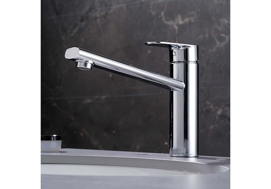 - Длинный излив подходит для большинства кухонных моек и облегчает повседневное использование.