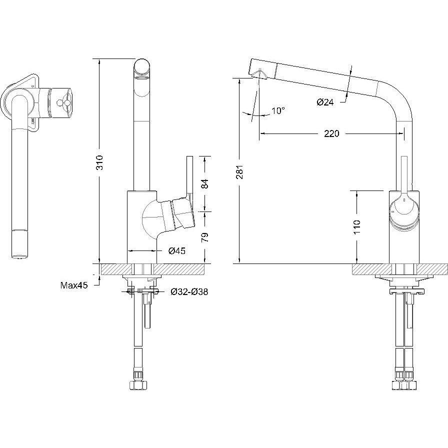 Корпус смесителя выполнен из прочной и стойкой к коррозии латуни, обеспечивая долговечность использования. Высота излива составляет 28.1 см, а длина — 22 см, что делает его идеальным для мытья даже больших кастрюль и наполнения высоких емкостей. Керамический картридж диаметром 35 мм обеспечивает минимальный расход воды — всего 8.3 л/мин. В комплект входят две гибкие подводки длиной 450 мм M10-G1/2 SS, а также необходимые крепления. Смеситель оснащен аэратором для более комфортного использования.