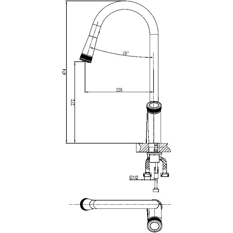 Смеситель выполнен из высококачественной латуни и имеет глянцевое покрытие, подчеркивающее его современный дизайн. Высота излива составляет 27.2 см, а длина — 22.8 см, что обеспечивает оптимальное пространство для работы с мойкой. Оснащен гибкой подводкой, аэратором и креплениями, упрощающими установку.