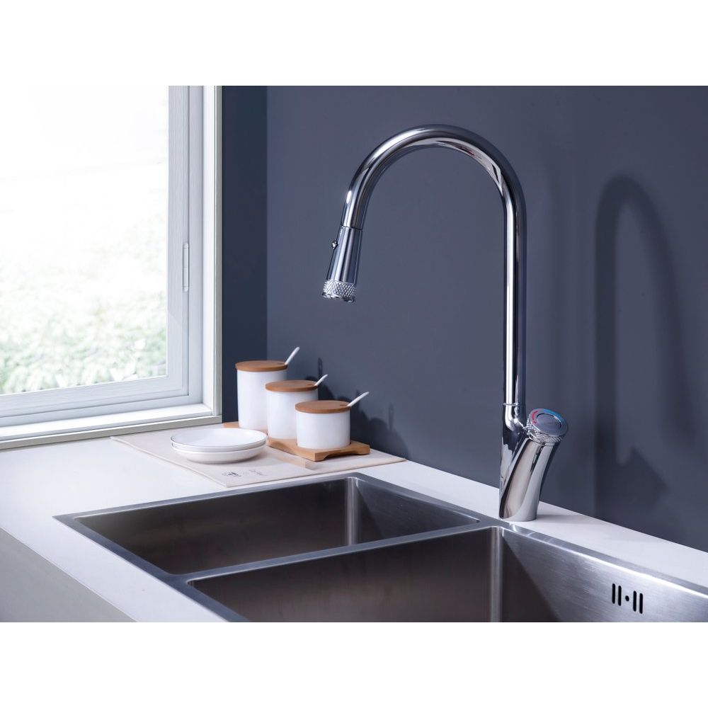 Перед покупкой смесителя стоит учесть, что наличие выдвижного излива требует немного больше места под раковиной. Убедитесь, что ваша мойка подходит по размерам. Смеситель легок в установке и подходит для кухонь с различными интерьерами благодаря своему универсальному дизайну и функции экономии воды, которая поможет сократить счета за коммунальные услуги.