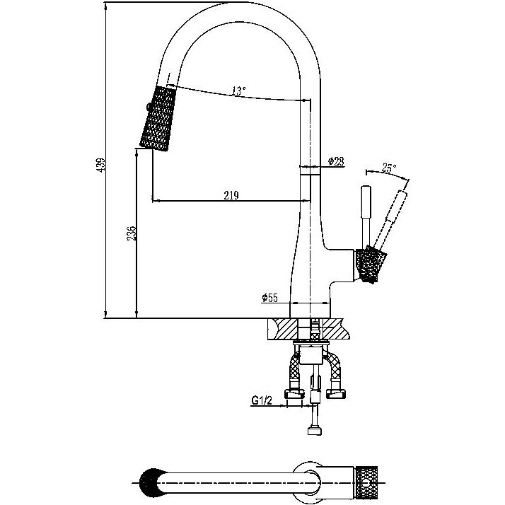 - Высота излива 23.6 см и длина 21.9 см делают его идеальным выбором для большинства кухонь.