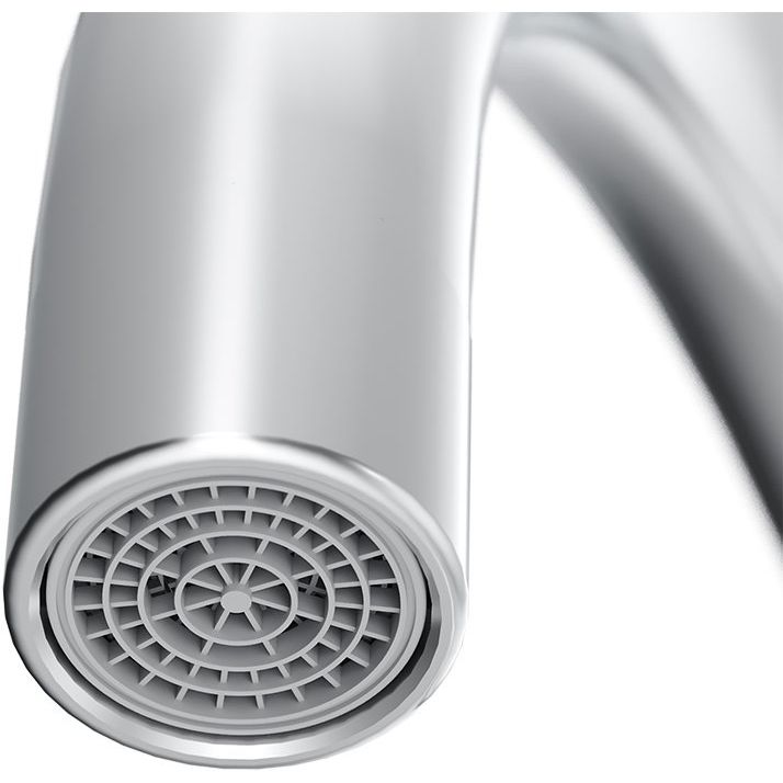 Высота излива составляет 27.1 см, а длина — 20.2 см, что делает смеситель идеальным для глубокой и широкой кухонной раковины. Глянцевая поверхность добавляет стилю вашей кухне и упрощает уход за изделием. Кроме того, смеситель оснащен аэратором для экономии воды, гибкой подводкой и надежными креплениями.