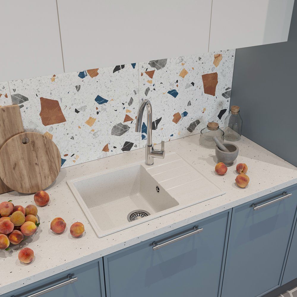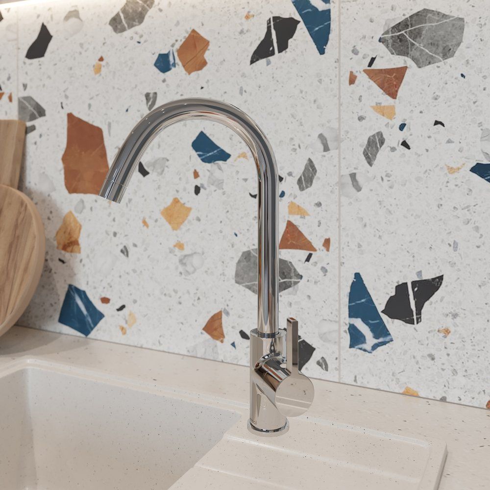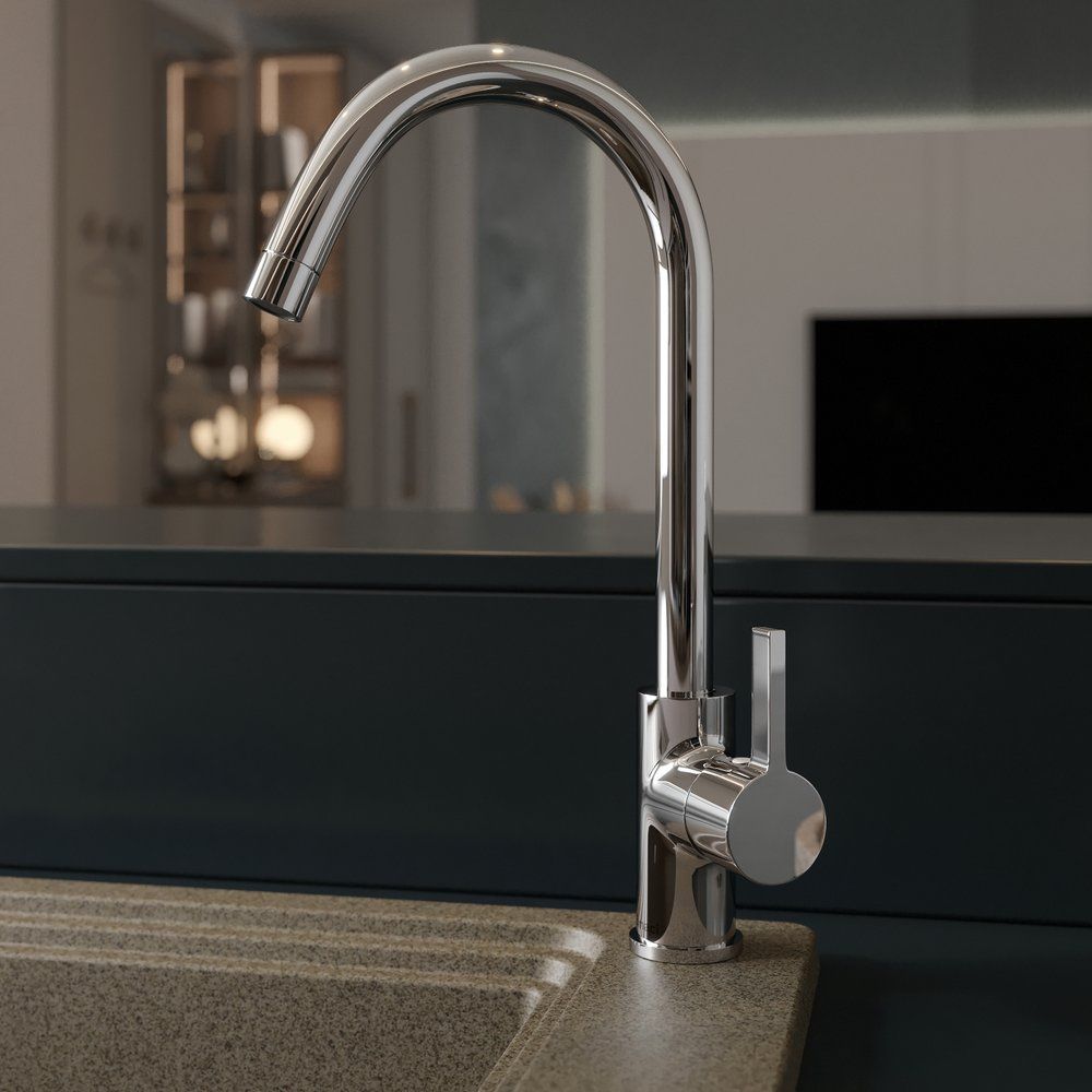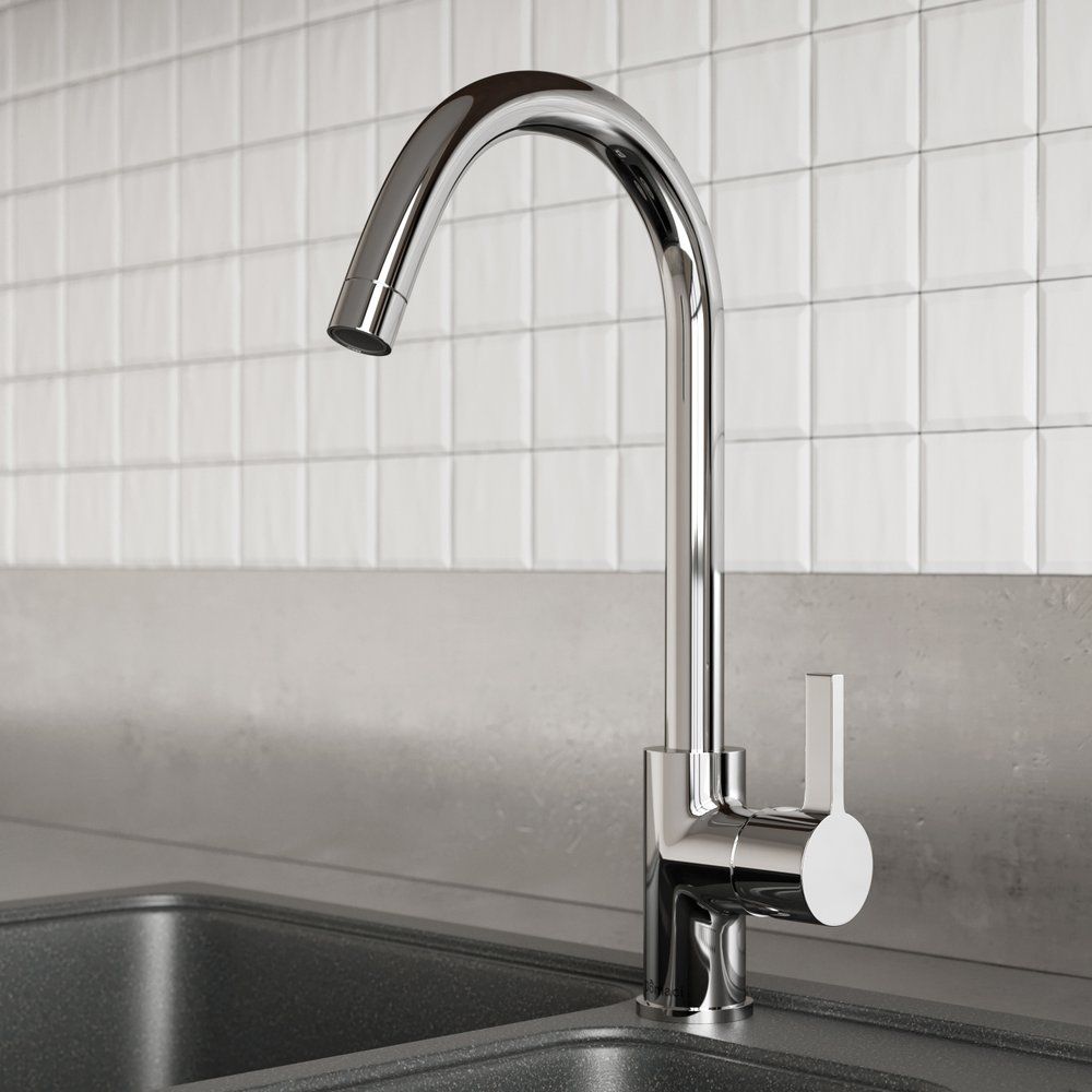 Смеситель выполнен из прочной латуни и имеет глянцевую поверхность, что обеспечивает не только долговечность, но и легкость в уходе. Высота излива составляет 25 см, а его длина — 17,4 см, что идеально подходит для удобного использования на кухне. Керамический картридж гарантирует плавность работы и долгий срок службы. Смеситель оснащен всеми необходимыми компонентами для установки — аэратором, гибкой подводкой и креплениями.