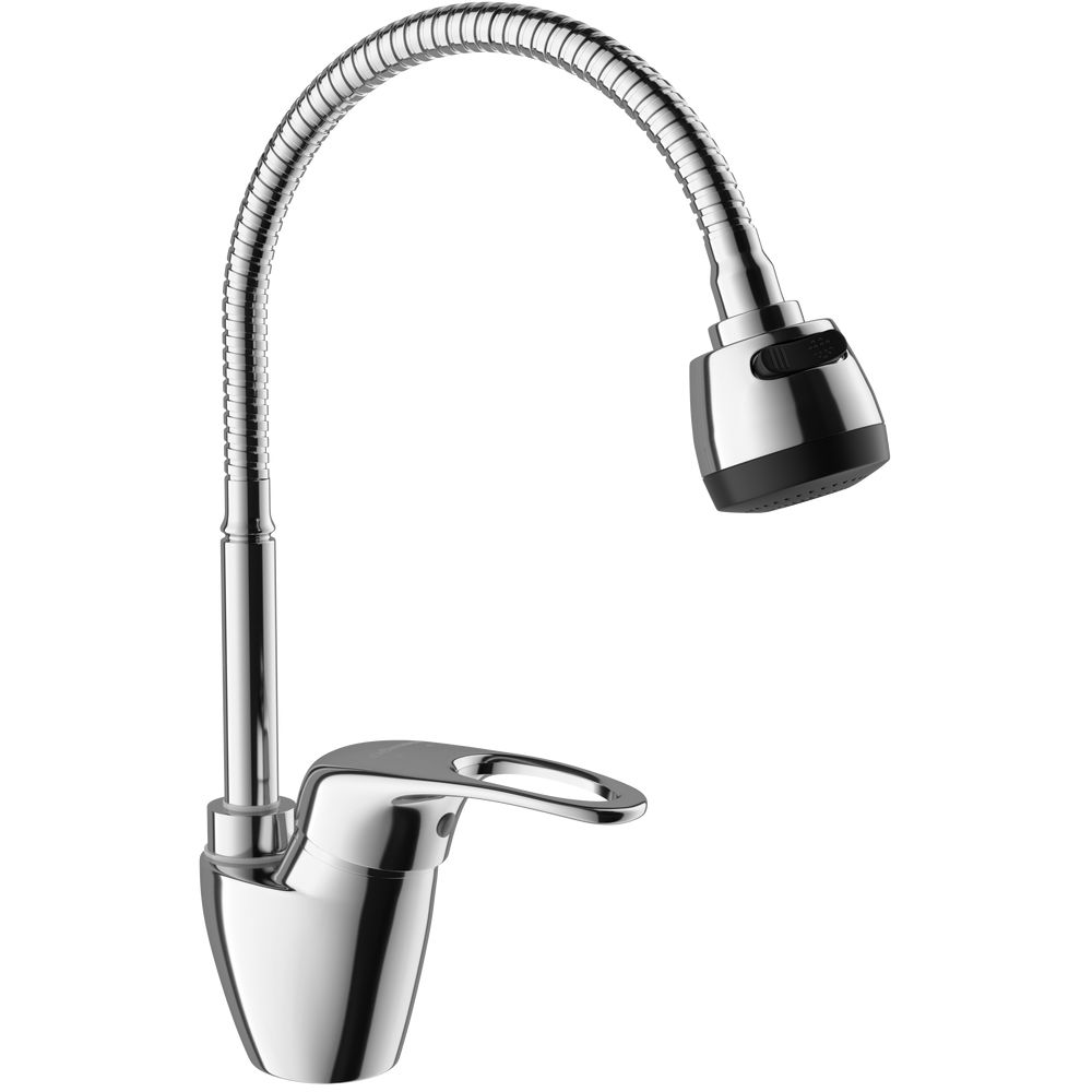 Смеситель изготовлен из прочной латуни с глянцевой хромированной поверхностью. Высота излива составляет 18 см, а длина — 22 см, что обеспечивает удобство использования в большинстве кухонных раковин. Оснащён керамическим картриджем, который гарантирует плавное и бесшумное открывание и закрывание потока воды. Гибкая подводка и наличие аэратора делают процесс использования ещё более комфортным. На изделие распространяется гарантия 5 лет.