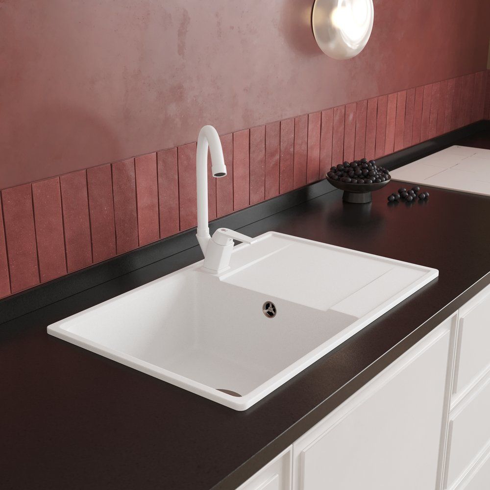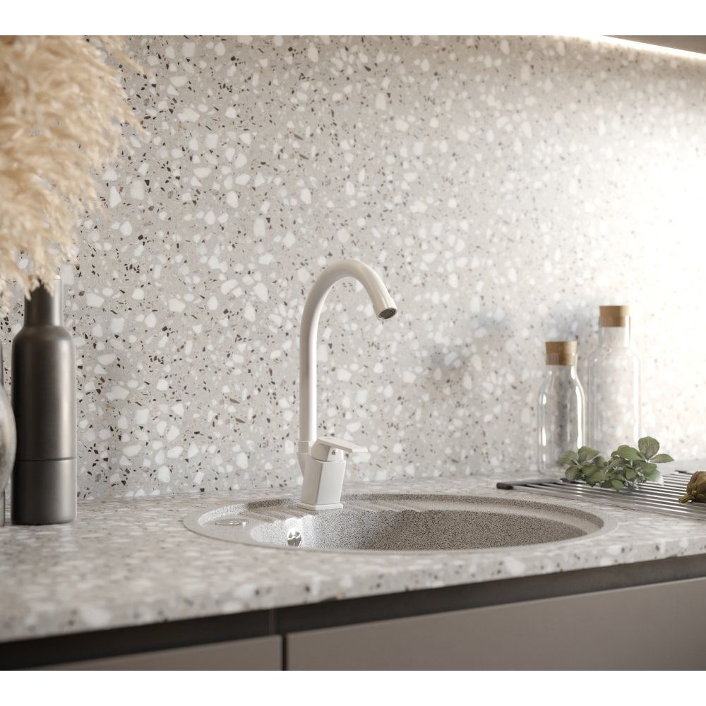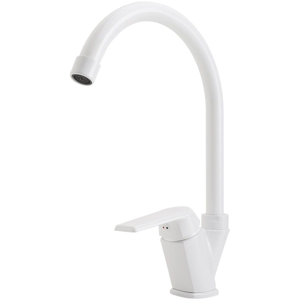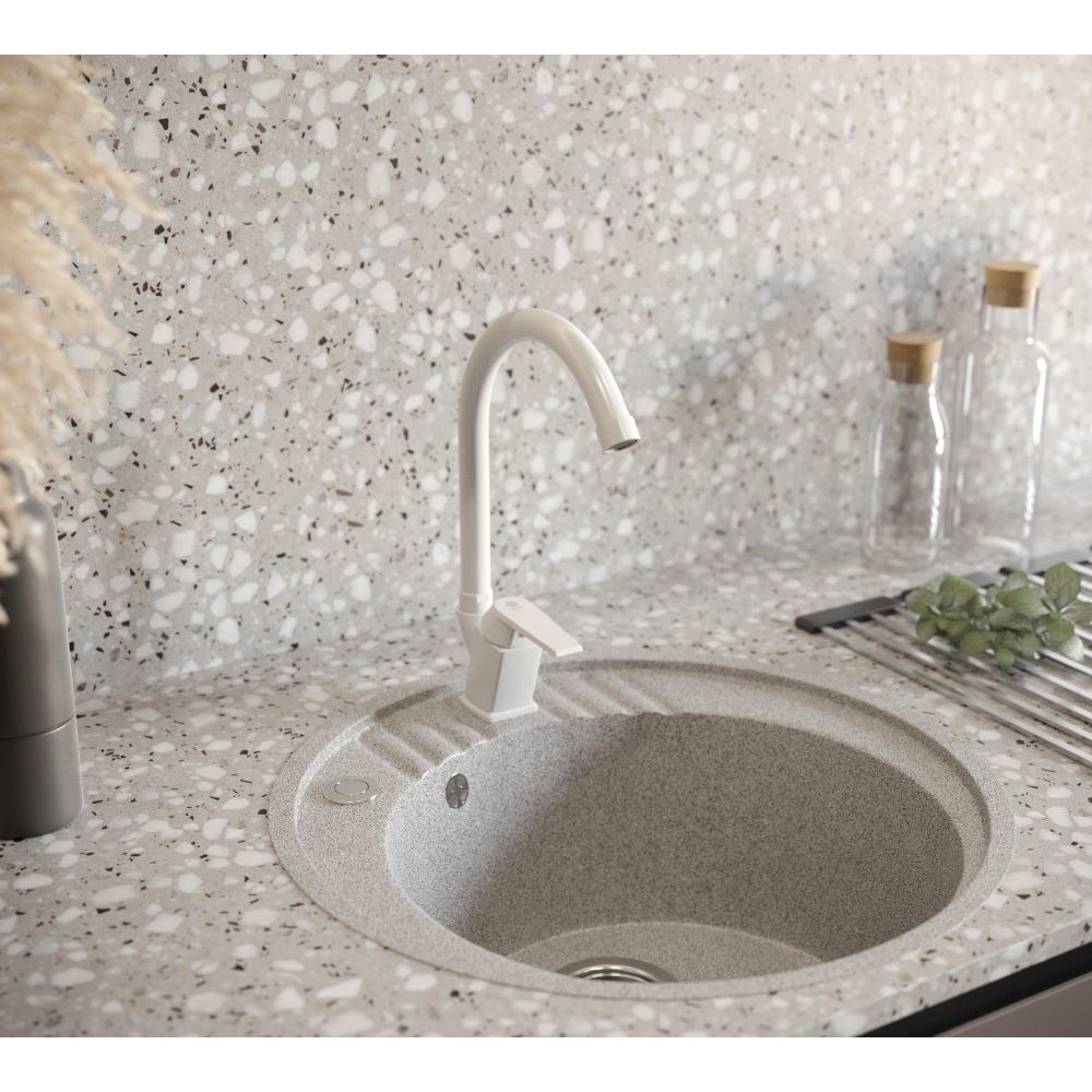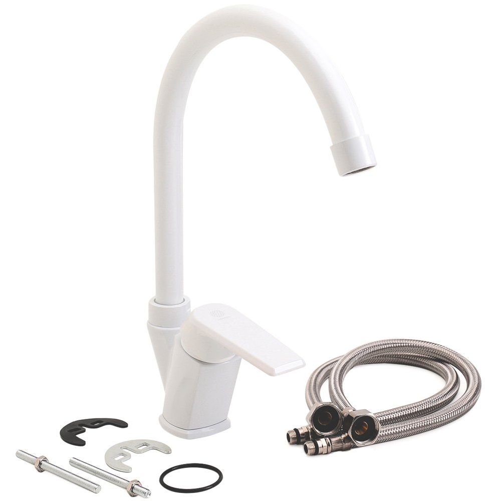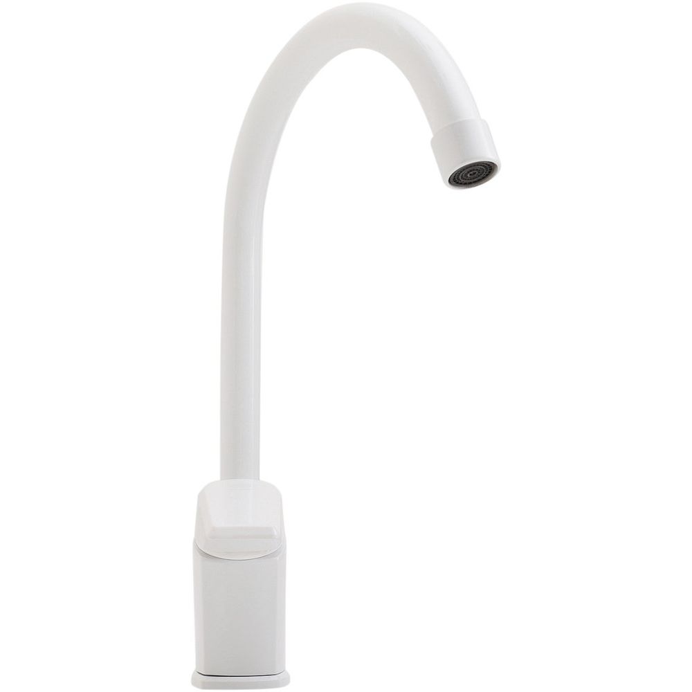 Смеситель выполнен из прочного пластика с матовой поверхностью, что придает ему стильный и современный вид. Высота излива составляет 20.5 см, а длина — 16.3 см, что обеспечивает удобство использования на кухне. Оснащен керамическим картриджем, аэратором и системой гибкой подводки для простой установки. В комплект входят все необходимые крепления, а гарантия на изделие составляет внушительные 15 лет.