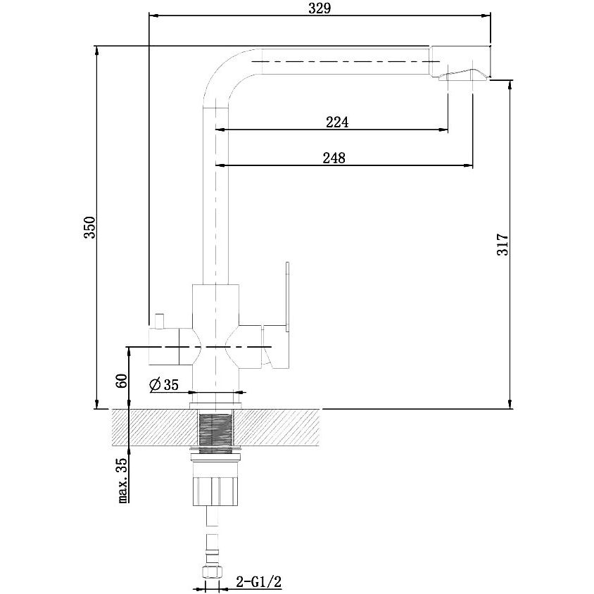 - Высокая функциональность благодаря совмещённому изливу для фильтрованной воды.